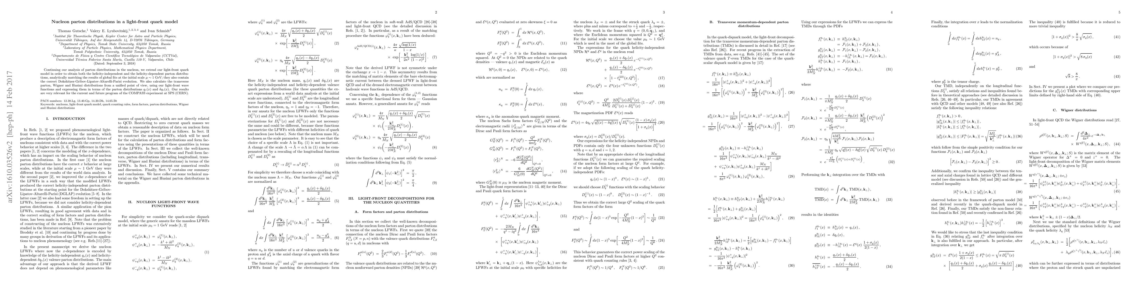 The paper proposes light-front wave functions (LFWFs) for the nucleon that analytically reproduce quark parton distributions at the initial scale µ ~ 1 GeV, presenting a list of different types of nucleon parton distributions in terms of quark PDFs and longitudinal functions D(i)q.