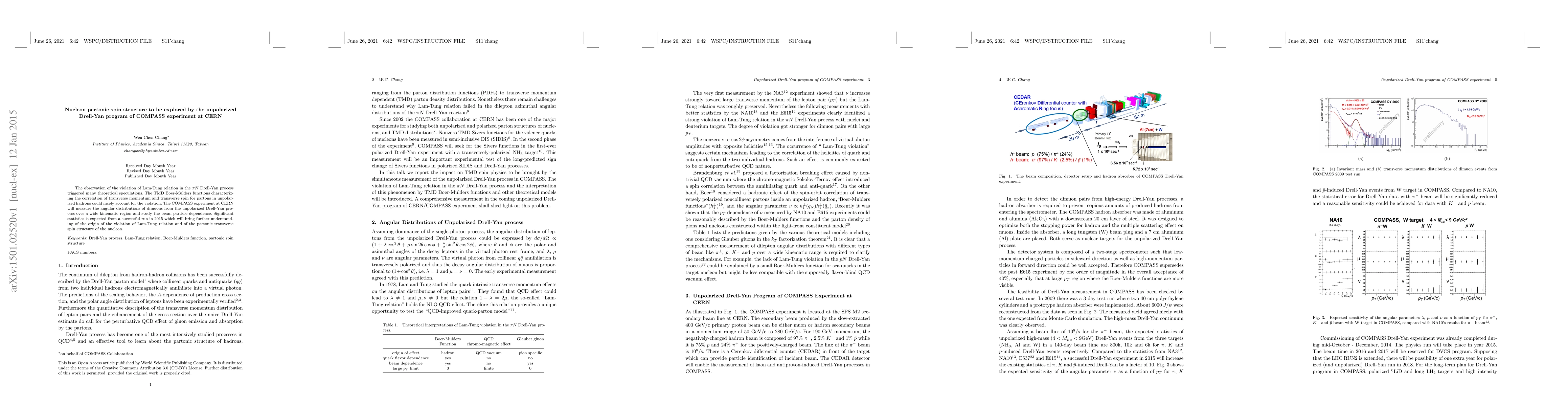 The COMPASS experiment at CERN aims to explore the nucleon's partonic spin structure via the unpolarized Drell-Yan process, focusing on the violation of the Lam-Tung relation and the role of TMD Boer-Mulders functions. Anticipated significant data from 2015 will provide insights into the partonic transverse spin structure and the origin of the observed relation violation.