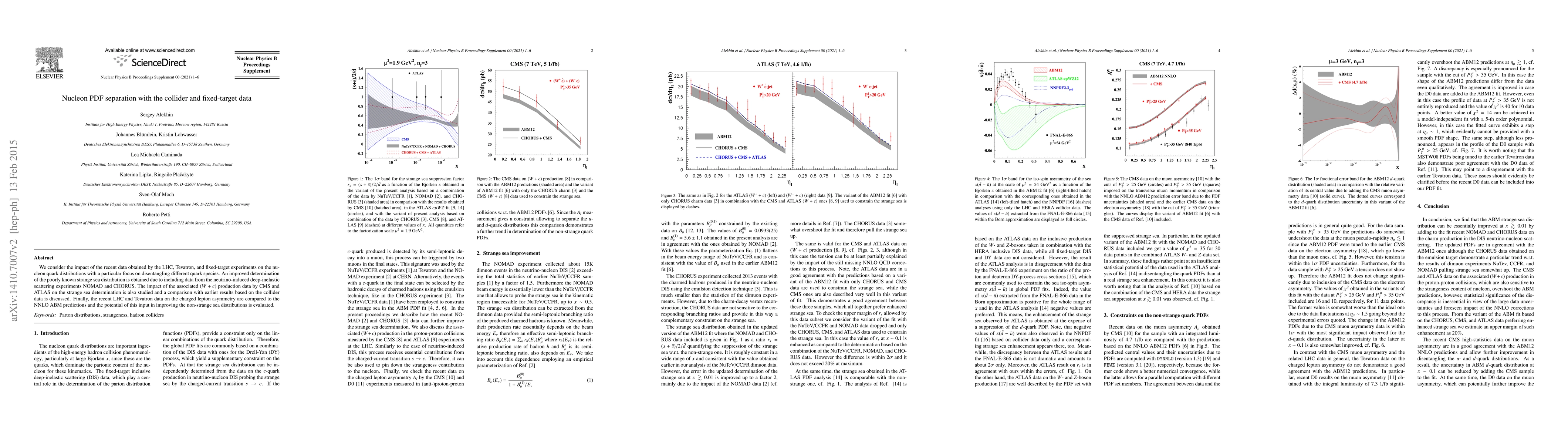 We consider the impact of the recent data obtained by the LHC, Tevatron, and fixed-target experiments on the nucleon quark distributions with a particular focus on disentangling different quark species. An improved determination of the poorly known strange sea distribution is obtained due to including data from the neutrino-induced deep-inelastic scattering experiments NOMAD and CHORUS. The impact of the associated (W + c) production data by CMS and ATLAS on the strange sea determination is also studied and a comparison with earlier results based on the collider data is discussed. Finally, the recent LHC and Tevatron data on the charged lepton asymmetry are compared to the NNLO ABM predictions and the potential of this input in improving the non-strange sea distributions is evaluated.