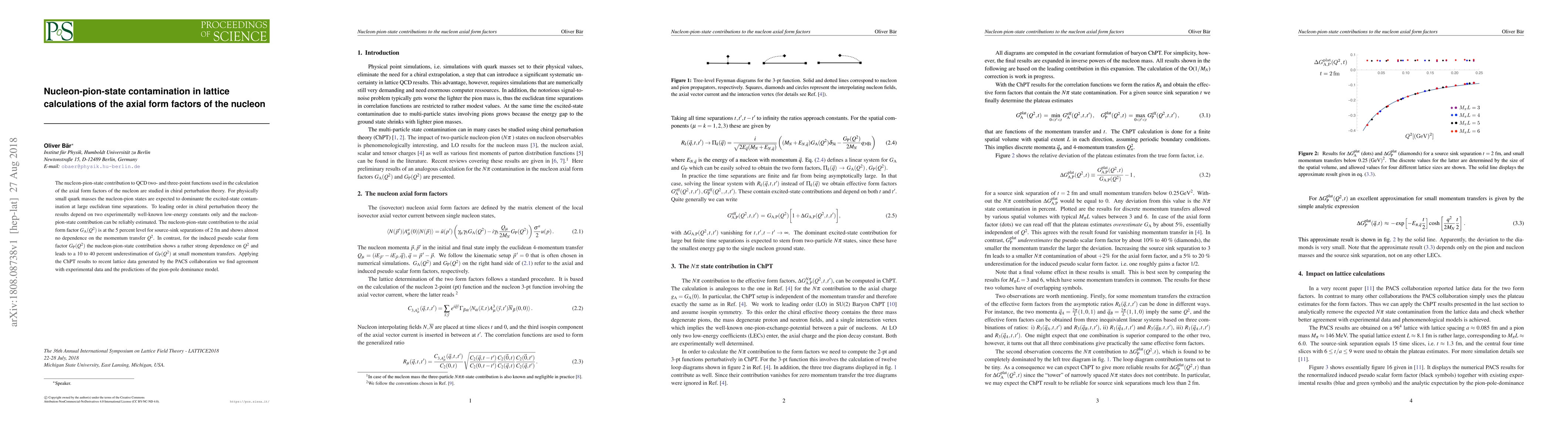 The nucleon-pion-state contribution to QCD two- and three-point functions used in the calculation of the axial form factors of the nucleon are studied in chiral perturbation theory. For physically small quark masses the nucleon-pion states are expected to dominante the excited-state contamination at large euclidean time separations. To leading order in chiral perturbation theory the results depend on two experimentally well-known low-energy constants only and the nucleon-pion-state contribution can be reliably estimated. The nucleon-pion-state contribution to the axial form factor $G_{\rm A}(Q^2)$ is at the 5 percent level for source-sink separations of 2 fm and shows almost no dependence on the momentum transfer $Q^2$. In contrast, for the induced pseudo scalar form factor $G_{\rm P}(Q^2)$ the nucleon-pion-state contribution shows a rather strong dependence on $Q^2$ and leads to a 10 to 40 percent underestimation of $G_{\rm P}(Q^2)$ at small momentum transfers. Applying the ChPT results to recent lattice data generated by the PACS collaboration we find agreement with experimental data and the predictions of the pion-pole dominance model.