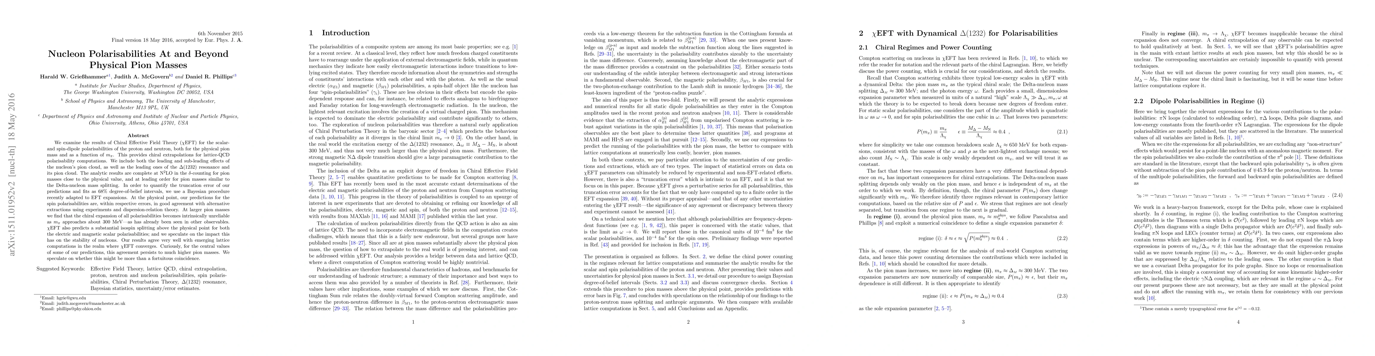We examine the results of Chiral Effective Field Theory ($\chi$EFT) for the scalar- and spin-dipole polarisabilities of the proton and neutron, both for the physical pion mass and as a function of $m_\pi$. This provides chiral extrapolations for lattice-QCD polarisability computations. We include both the leading and sub-leading effects of the nucleon's pion cloud, as well as the leading ones of the $\Delta(1232)$ resonance and its pion cloud. The analytic results are complete at N$^2$LO in the $\delta$-counting for pion masses close to the physical value, and at leading order for pion masses similar to the Delta-nucleon mass splitting. In order to quantify the truncation error of our predictions and fits as $68$\% degree-of-belief intervals, we use a Bayesian procedure recently adapted to EFT expansions. At the physical point, our predictions for the spin polarisabilities are, within respective errors, in good agreement with alternative extractions using experiments and dispersion-relation theory. At larger pion masses we find that the chiral expansion of all polarisabilities becomes intrinsically unreliable as $m_\pi$ approaches about $300\;$MeV---as has already been seen in other observables. $\chi$EFT also predicts a substantial isospin splitting above the physical point for both the electric and magnetic scalar polarisabilities; and we speculate on the impact this has on the stability of nucleons. Our results agree very well with emerging lattice computations in the realm where $\chi$EFT converges. Curiously, for the central values of some of our predictions, this agreement persists to much higher pion masses. We speculate on whether this might be more than a fortuitous coincidence.