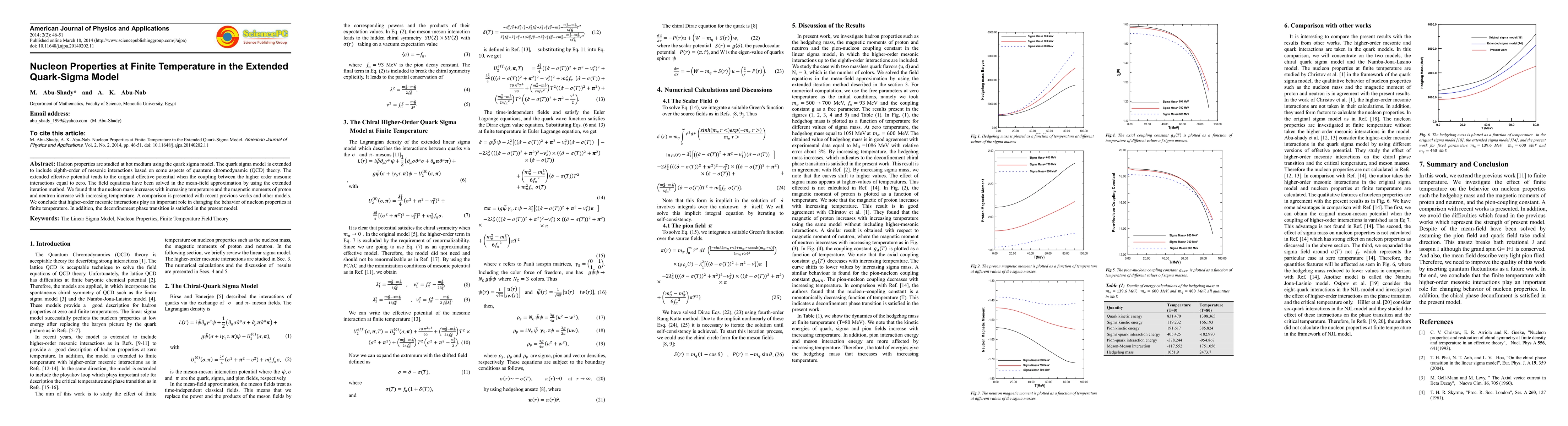 This paper investigates nucleon properties at finite temperatures using an extended quark-sigma model with eighth-order mesonic interactions. Results show that nucleon mass and magnetic moments increase with temperature, highlighting the significance of higher-order mesonic interactions in altering nucleon behavior, and confirming the model's consistency with deconfinement phase transition.