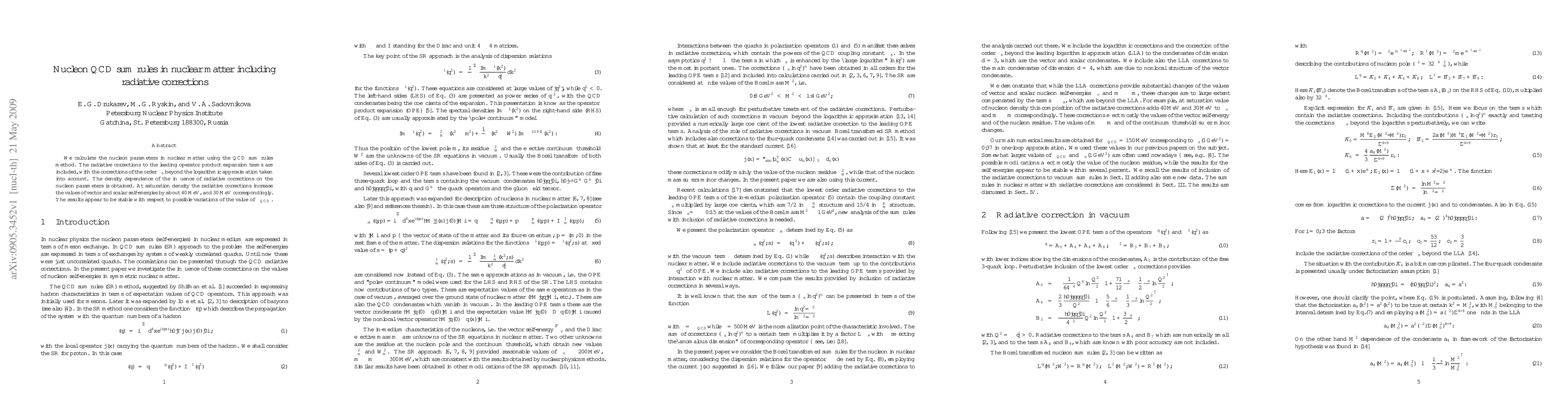 This paper calculates nucleon parameters in nuclear matter using QCD sum rules, incorporating radiative corrections beyond the logarithmic approximation. The study finds that at saturation density, radiative corrections increase the vector and scalar self-energies by approximately 40 MeV and 30 MeV, respectively, with results stable against variations in the QCD scale parameter.