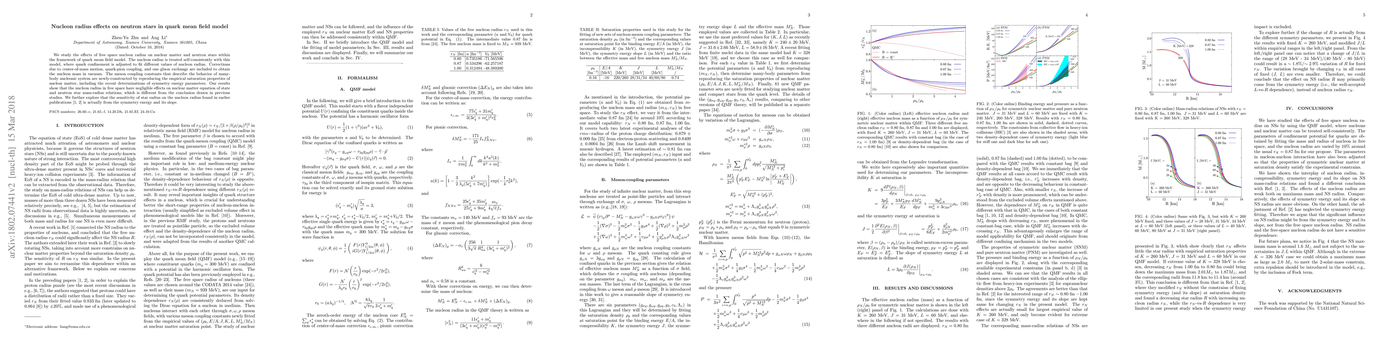 This paper investigates the impact of free space nucleon radius on nuclear matter and neutron stars using a quark mean field model, finding negligible effects on the equation of state and mass-radius relations of neutron stars, contrary to previous studies, which attribute earlier findings to symmetry energy and its slope.