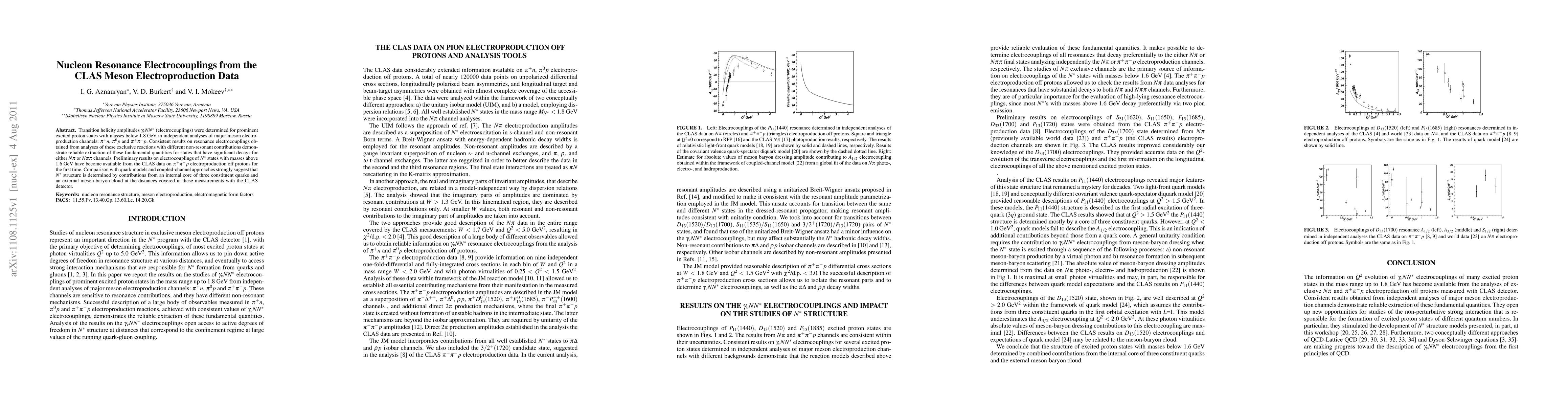 This paper determines nucleon resonance electrocouplings for proton excited states using CLAS meson electroproduction data, showing consistent results across different channels. Preliminary findings suggest that the structure of $N^*$ states is influenced by both a three-quark core and an external meson-baryon cloud.