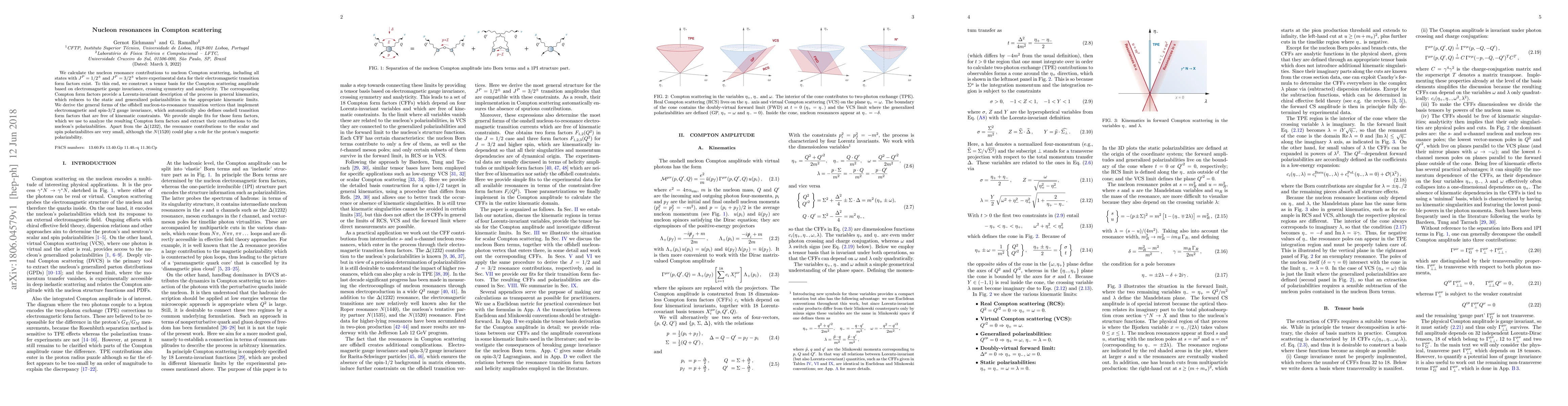 This paper calculates nucleon resonance contributions to Compton scattering, focusing on states with specific angular momenta and parities. It constructs a tensor basis for the scattering amplitude, deriving the general forms of the transition vertices and providing fits for the form factors, which are then used to analyze the nucleon's polarizabilities, revealing minimal contributions from most resonances except for potential effects from N(1520) on the proton's magnetic polarizability.