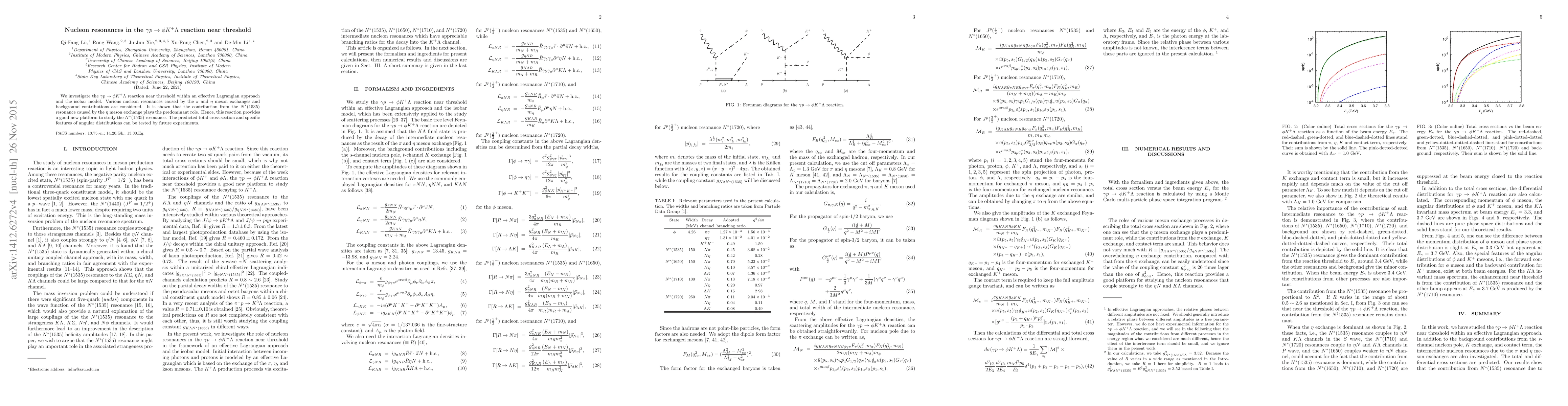 This paper investigates the $\gamma p \to \phi K^+ \Lambda$ reaction near threshold, finding that the $N^*(1535)$ resonance, primarily from $\eta$ meson exchange, dominates. Future experiments can test the predicted total cross section and angular distributions.