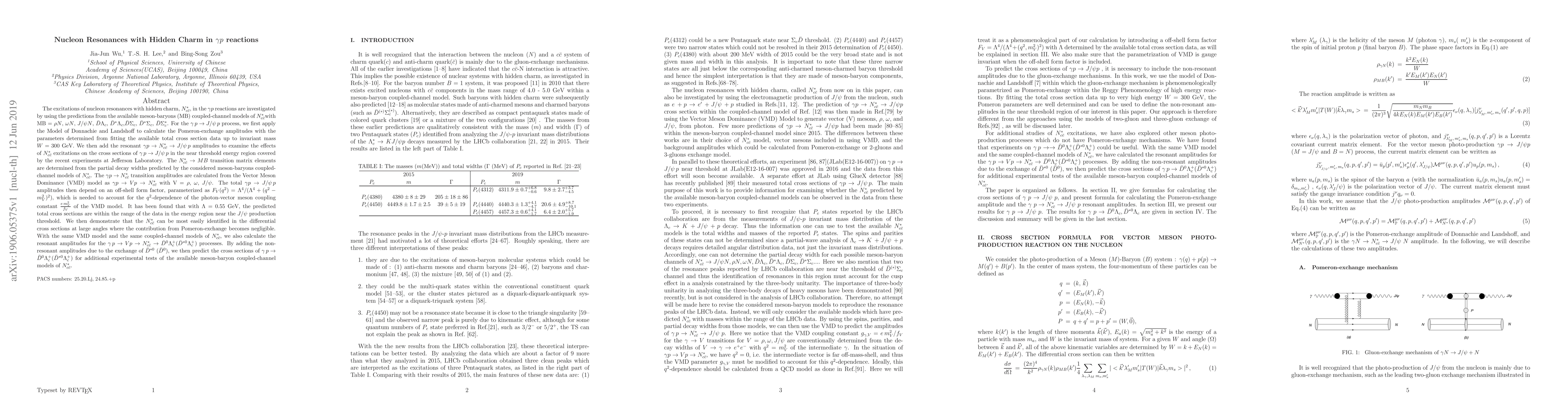 This paper investigates nucleon resonances with hidden charm, $N^*_{c\bar{c}}$, in $\gamma p$ reactions, calculating their effects on the cross sections of $\gamma\,p\rightarrow J/\psi\, p$ and $\gamma\,p\rightarrow \bar{D}^0\Lambda_c^+ (\bar{D}^{*0}\Lambda_c^+)$ using meson-baryon coupled-channel models and the Vector Meson Dominance model. The study identifies $N^*_{c\bar{c}}$ most clearly in differential cross sections at large angles.
