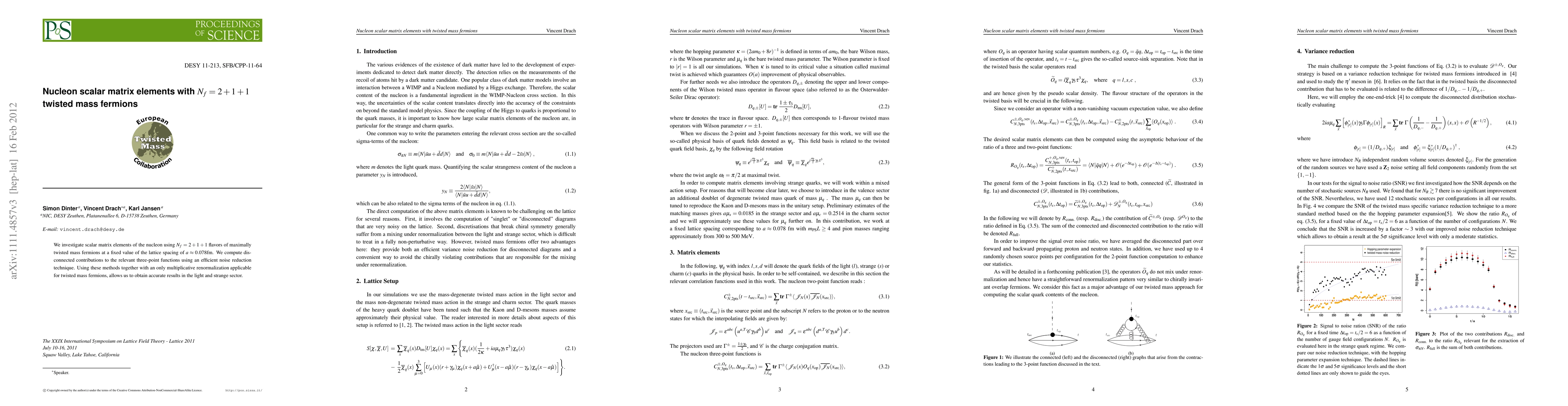We investigate scalar matrix elements of the nucleon using $N_f=2+1+1$ flavors of maximally twisted mass fermions at a fixed value of the lattice spacing of $a\approx 0.078{\rm fm}$. We compute disconnected contributions to the relevant three-point functions using an efficient noise reduction technique. Using these methods together with an only multiplicative renormalization applicable for twisted mass fermions, allows us to obtain accurate results in the light and strange sector.