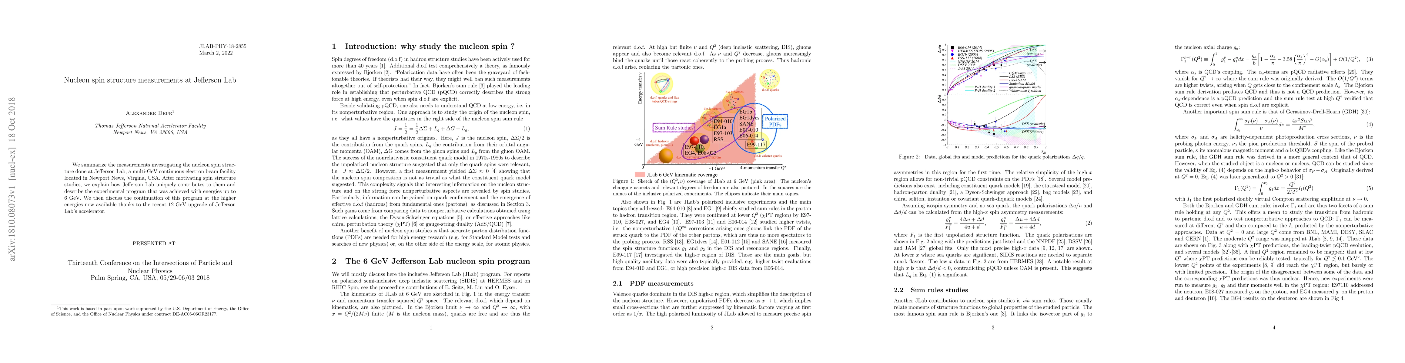 We summarize the measurements investigating the nucleon spin structure done at Jefferson Lab, a multi-GeV continuous electron beam facility located in Newport News, Virgina, USA. After motivating spin structure studies, we explain how Jefferson Lab uniquely contributes to them and describe the experimental program that was achieved with energies up to 6 GeV. We then discuss the continuation of this program at the higher energies now available thanks to the recent 12 GeV upgrade of Jefferson Lab's accelerator.
