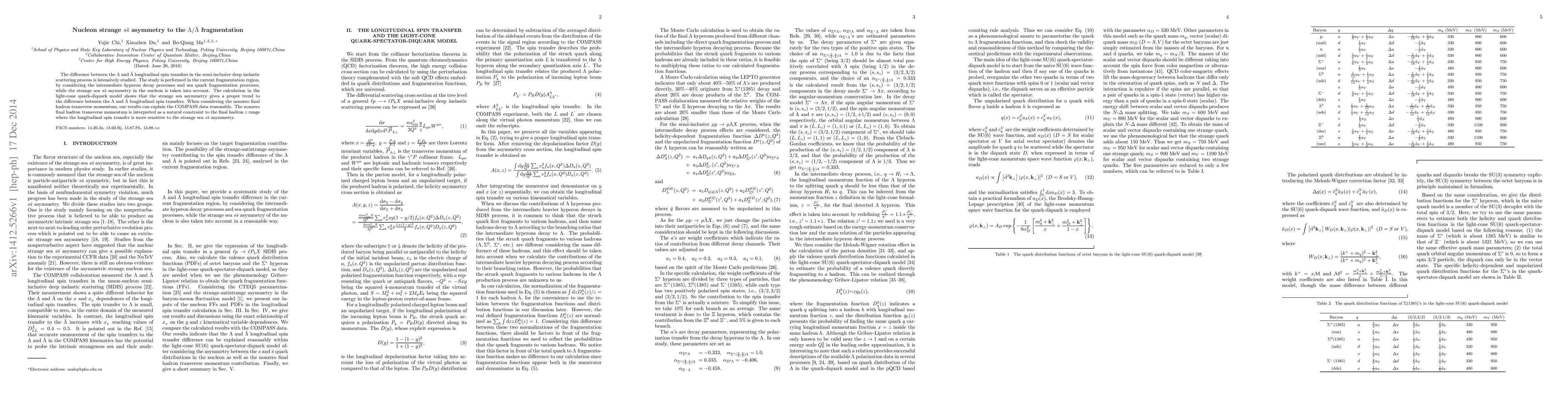 This paper investigates the nucleon strange $s\bar s$ asymmetry's effect on the $\Lambda/\bar\Lambda$ fragmentation in semi-inclusive deep inelastic scattering, showing that the asymmetry explains the difference in longitudinal spin transfers. The study also accounts for the nonzero final hadron transverse momentum, providing a reasonable explanation for COMPASS data.