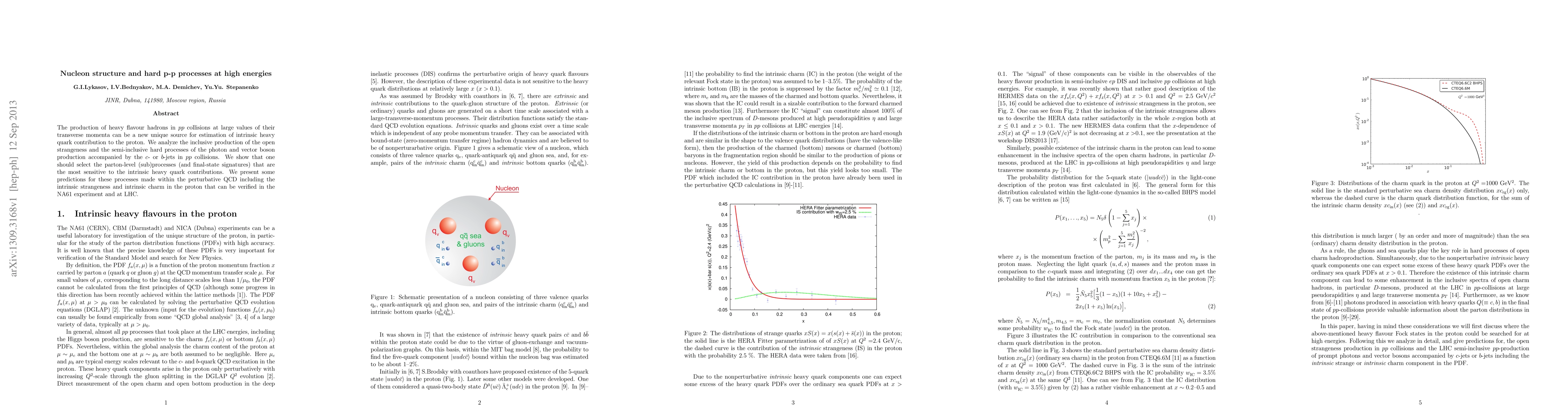 The production of heavy flavour hadrons in $pp$ collisions at large values of their transverse momenta can be a new unique source for estimation of intrinsic heavy quark contribution to the proton. We analyze the inclusive production of the open strangeness and the semi-inclusive hard processes of the photon and vector boson production accompanied by the $c$- or $b$-jets in $pp$ collisions. We show that one should select the parton-level (sub)processes (and final-state signatures) that are the most sensitive to the intrinsic heavy quark contributions. We present some predictions for these processes made within the perturbative QCD including the intrinsic strangeness and intrinsic charm in the proton that can be verified in the NA61 experiment and at LHC.