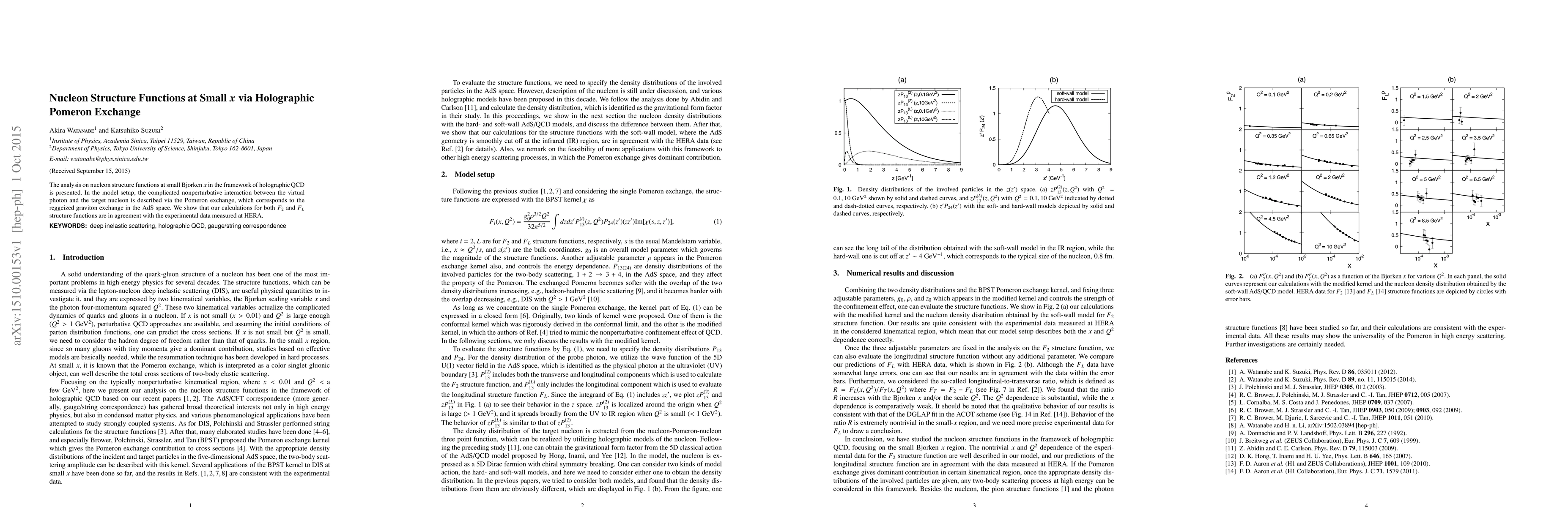 This research explores nucleon structure functions at small Bjorken $x$ within holographic QCD, using Pomeron exchange to model interactions. The calculations for $F_2$ and $F_L$ functions match HERA experimental data, demonstrating the model's validity.