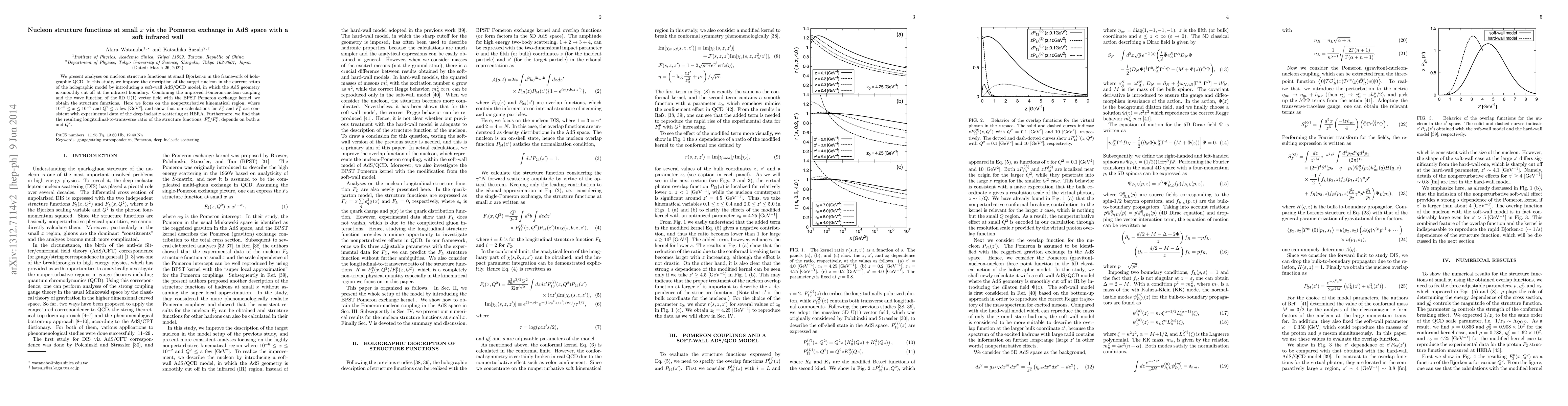 This paper investigates nucleon structure functions at small Bjorken-$x$ using a holographic QCD model with a soft-infrared wall in AdS space, showing consistency with HERA experimental data for deep inelastic scattering. The study finds that the longitudinal-to-transverse ratio of structure functions depends on both $x$ and $Q^2$.