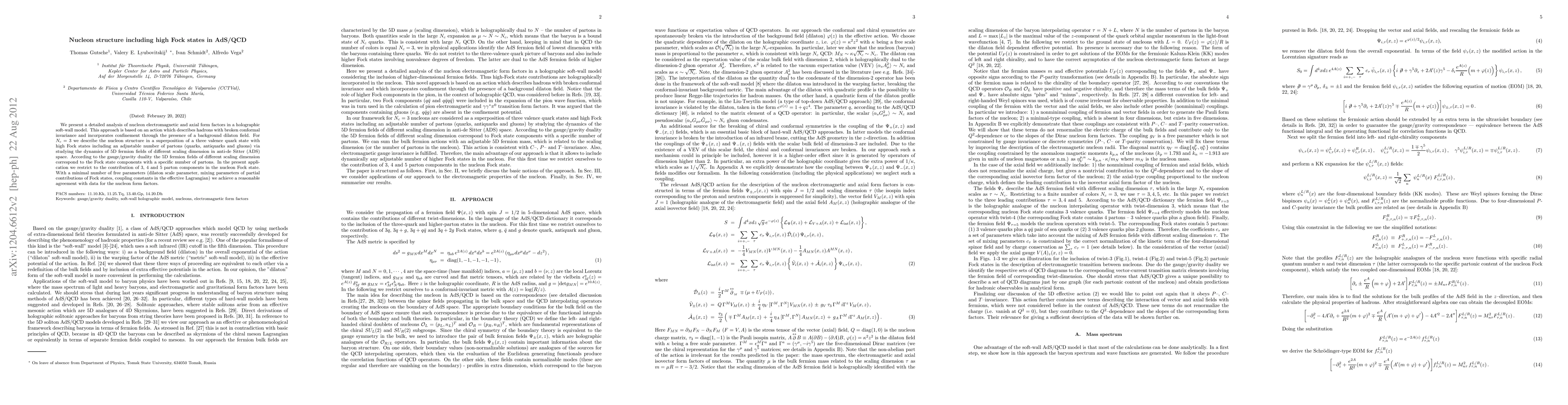 We present a detailed analysis of nucleon electromagnetic and axial form factors in a holographic soft-wall model. This approach is based on an action which describes hadrons with broken conformal invariance and incorporates confinement through the presence of a background dilaton field.For Nc=3 we describe the nucleon structure in a superposition of a three valence quark state with high Fock states including an adjustable number of partons (quarks, antiquarks and gluons) via studying the dynamics of 5D fermion fields of different scaling dimension in anti-de Sitter (ADS) space. According to the gauge/gravity duality the 5D fermion fields of different scaling dimension correspond to the Fock state components with a specific number of partons. In the present application we restrict to the contribution of 3, 4 and 5 parton components in the nucleon Fock state. With a minimal number of free parameters (dilaton scale parameter, mixing parameters of partial contributions of Fock states, coupling constants in the effective Lagrangian) we achieve a reasonable agreement with data for the nucleon form factors.