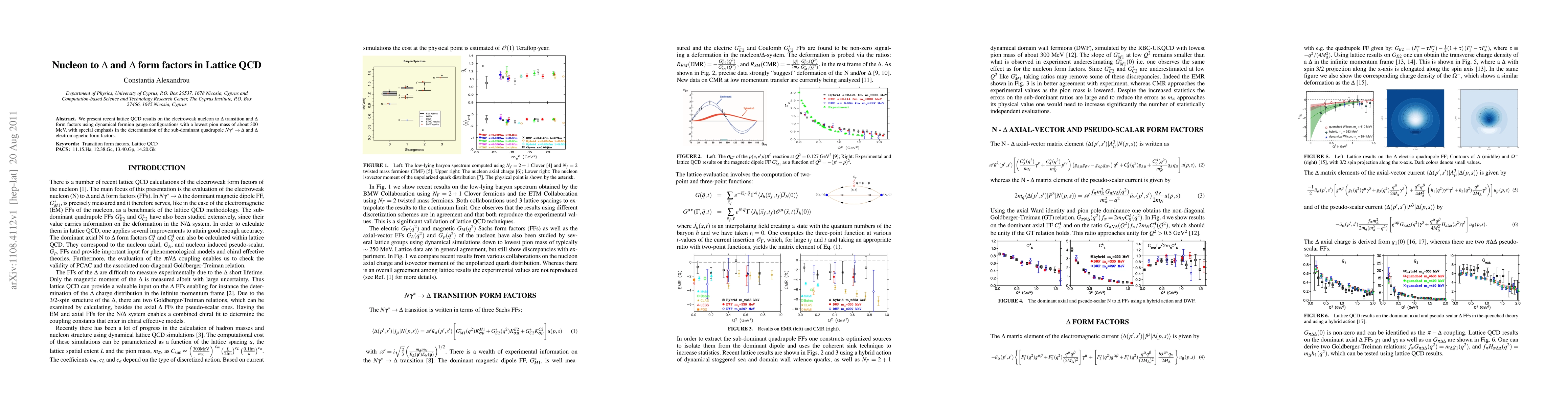 The paper presents advanced lattice QCD techniques for calculating nucleon-to-Δ transition form factors, including the sub-dominant quadrupole contributions, and validates these methods by comparing with experimental data and results from other lattice collaborations.