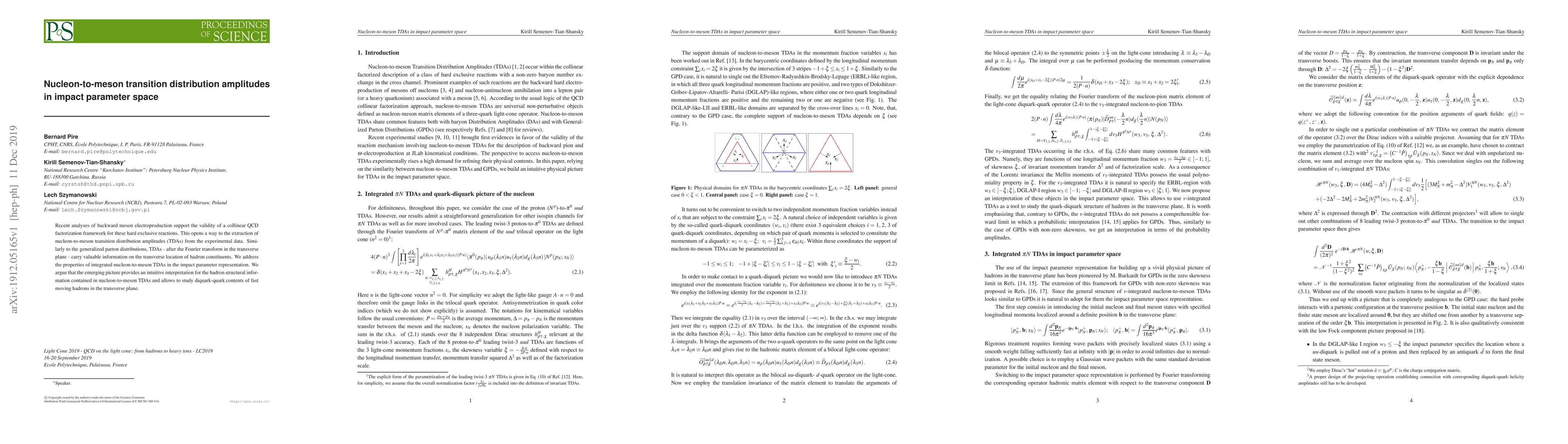 This paper investigates how to extract nucleon-to-meson transition distribution amplitudes from meson electroproduction data, providing insights into the structure of hadrons in the transverse plane.