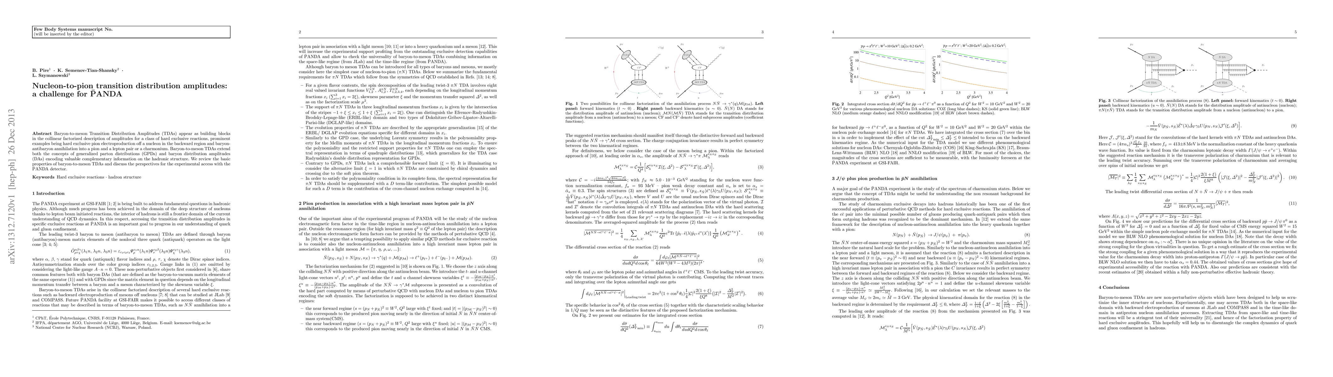 Baryon-to-meson Transition Distribution Amplitudes (TDAs) appear as building blocks in the collinear factorized description of amplitudes for a class of hard exclusive reactions, prominent examples being hard exclusive pion electroproduction off a nucleon in the backward region and baryon-antibaryon annihilation into a pion and a lepton pair or a charmonium. Baryon-to-meson TDAs extend both the concepts of generalized parton distributions (GPDs) and baryon distribution amplitudes (DAs) encoding valuable complementary information on the hadronic structure. We review the basic properties of baryon-to-meson TDAs and discuss the perspectives for the experimental access with the PANDA detector.