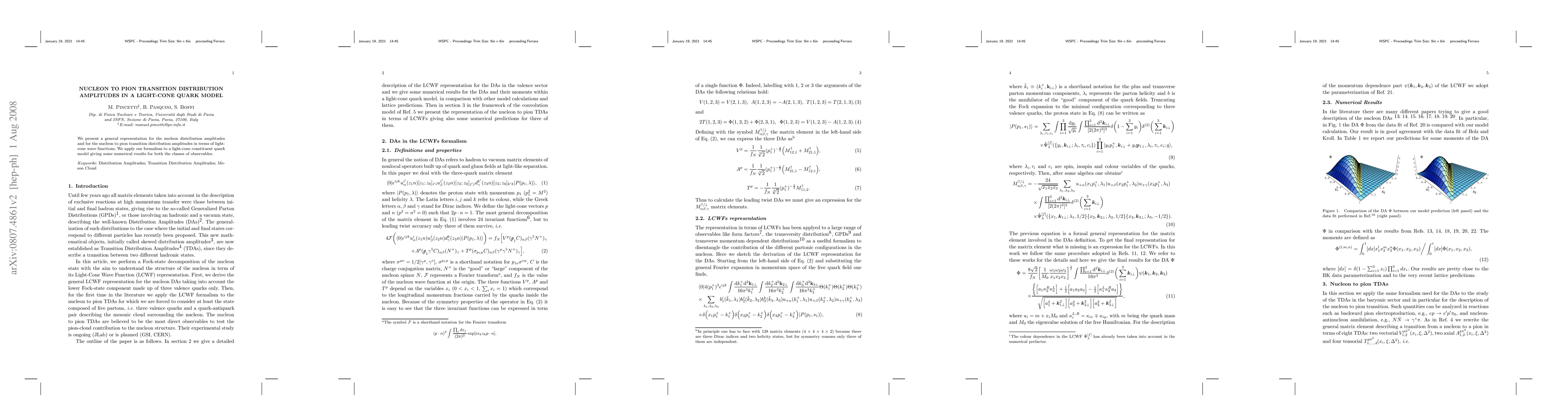 This paper introduces a general framework for nucleon and nucleon to pion transition distribution amplitudes using light-cone wave functions. It applies a light-cone constituent quark model to derive numerical results for these distribution amplitudes.