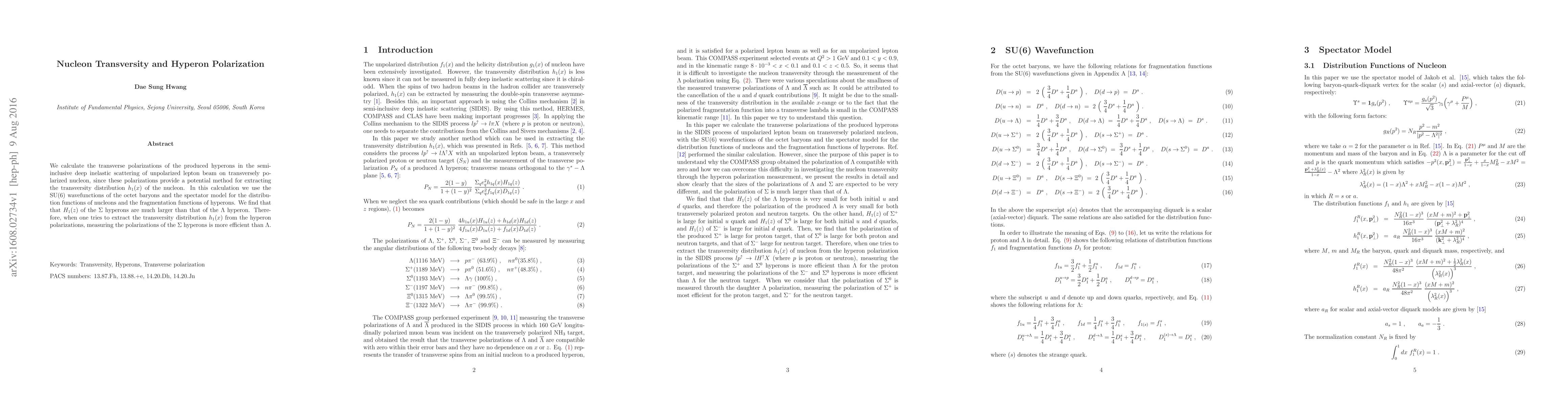We calculate the transverse polarizations of the produced hyperons in the semi-inclusive deep inelastic scattering of unpolarized lepton beam on transversely polarized nucleon, since these polarizations provide a potential method for extracting the transversity distribution h1(x) of the nucleon. In this calculation we use the SU(6) wavefunctions of the octet baryons and the spectator model for the distribution functions of nucleons and the fragmentation functions of hyperons. We find that that H1(z) of the Sigma hyperons are much larger than that of the Lambda hyperon. Therefore, when one tries to extract the transversity distribution h1(x) from the hyperon polarizations, measuring the polarizations of the Sigma hyperons is more efficient than Lambda.