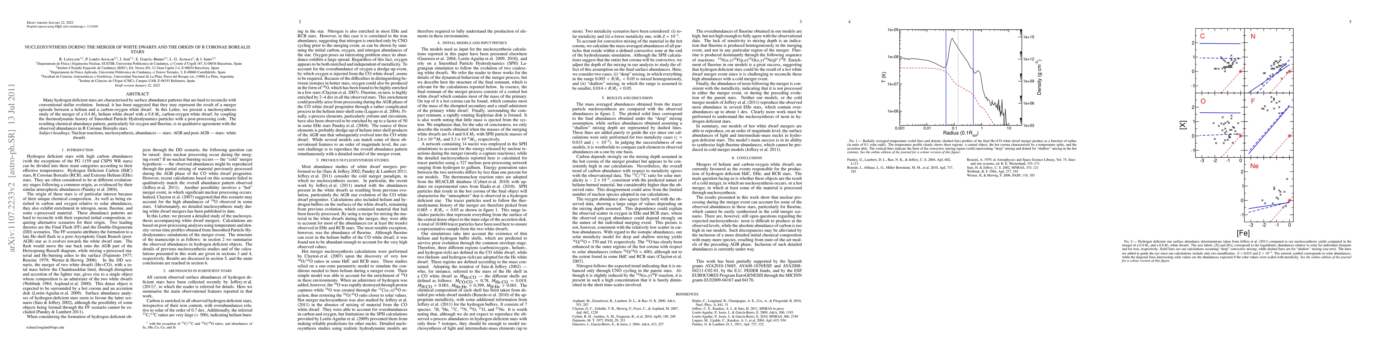 This paper investigates nucleosynthesis during the merger of a helium white dwarf and a carbon-oxygen white dwarf, finding that the resulting chemical abundances, especially for oxygen and fluorine, match those observed in R Coronae Borealis stars, suggesting these stars may originate from such mergers.