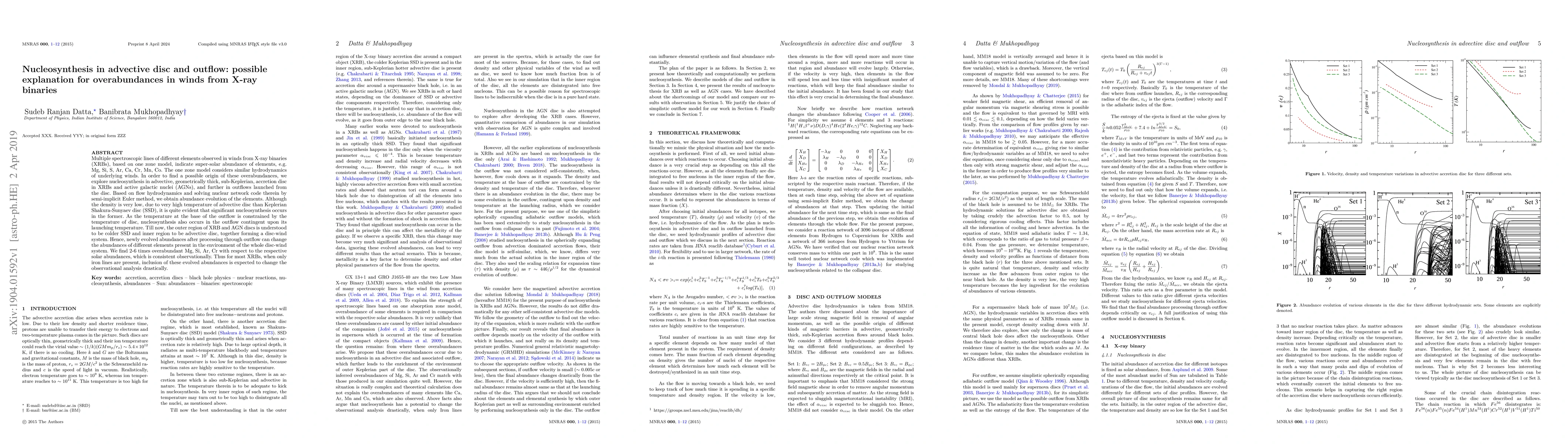This paper investigates nucleosynthesis in advective discs and outflows in X-ray binaries, finding significant overabundances of elements like Mg, Si, Ar, and Cr due to high temperatures in the advective disc. The study suggests that these evolved abundances can drastically alter observational analyses of X-ray binaries.