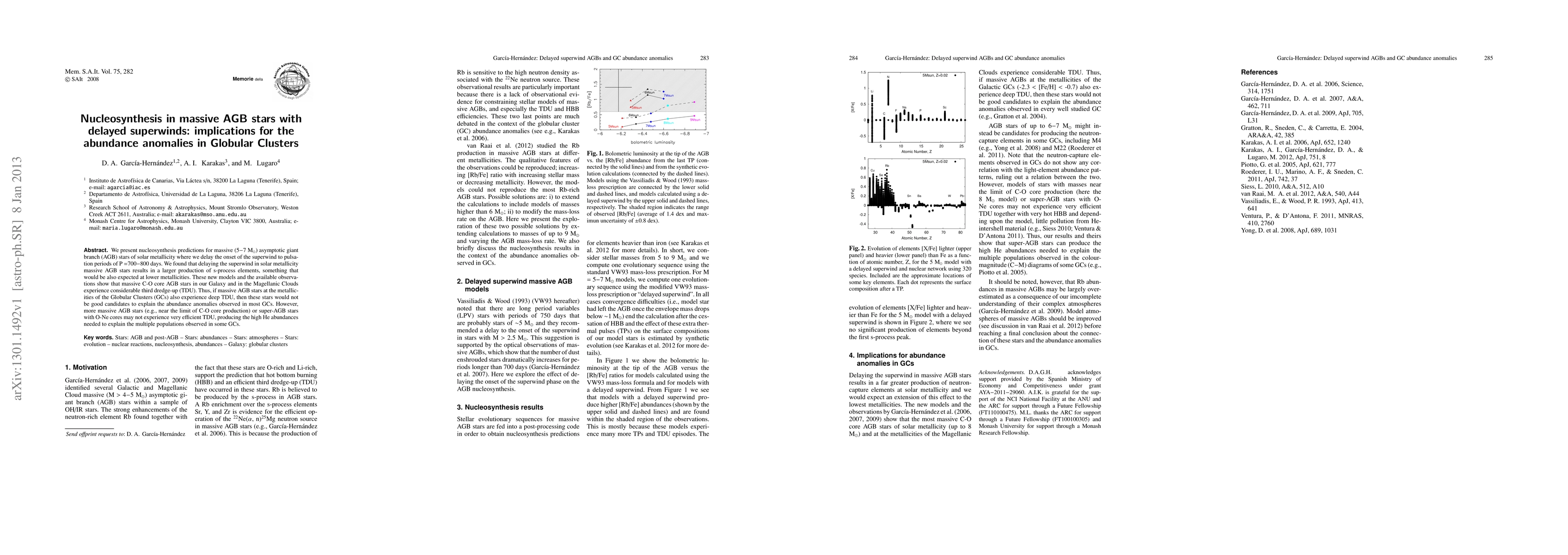 We present nucleosynthesis predictions for massive (5-7 solar masses) asymptotic giant branch (AGB) stars of solar metallicity where we delay the onset of the superwind to pulsation periods of P =700-800 days. We found that delaying the superwind in solar metallicity massive AGB stars results in a larger production of s-process elements, something that would be also expected at lower metallicities. These new models and the available observations show that massive C-O core AGB stars in our Galaxy and in the Magellanic Clouds experience considerable third dredge-up (TDU). Thus, if massive AGB stars at the metallicities of the Globular Clusters (GCs) also experience deep TDU, then these stars would not be good candidates to explain the abundance anomalies observed in most GCs. However, more massive AGB stars (e.g., near the limit of C-O core production) or super-AGB stars with O-Ne cores may not experience very efficient TDU, producing the high He abundances needed to explain the multiple populations observed in some GCs.