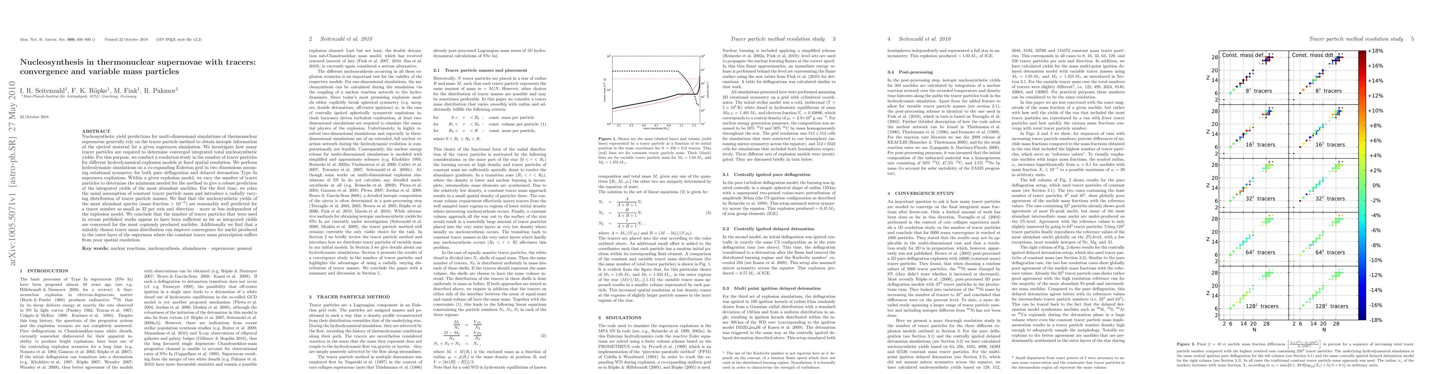 Nucleosynthetic yield predictions for multi-dimensional simulations of thermonuclear supernovae generally rely on the tracer particle method to obtain isotopic information of the ejected material for a given supernova simulation. We investigate how many tracer particles are required to determine converged integrated total nucleosynthetic yields. For this purpose, we conduct a resolution study in the number of tracer particles for different hydrodynamical explosion models at fixed spatial resolution. We perform hydrodynamic simulations on a co-expanding Eulerian grid in two dimensions assuming rotational symmetry for both pure deflagration and delayed detonation Type Ia supernova explosions. Within a given explosion model, we vary the number of tracer particles to determine the minimum needed for the method to give a robust prediction of the integrated yields of the most abundant nuclides. For the first time, we relax the usual assumption of constant tracer particle mass and introduce a radially vary- ing distribution of tracer particle masses. We find that the nucleosynthetic yields of the most abundant species (mass fraction > 10E-5) are reasonably well predicted for a tracer number as small as 32 per axis and direction - more or less independent of the explosion model. We conclude that the number of tracer particles that were used in extant published works appear to have been sufficient as far as integrated yields are concerned for the most copiously produced nuclides. Additionally we find that a suitably chosen tracer mass distribution can improve convergence for nuclei produced in the outer layer of the supernova where the constant tracer mass prescription suffers from poor spatial resolution.