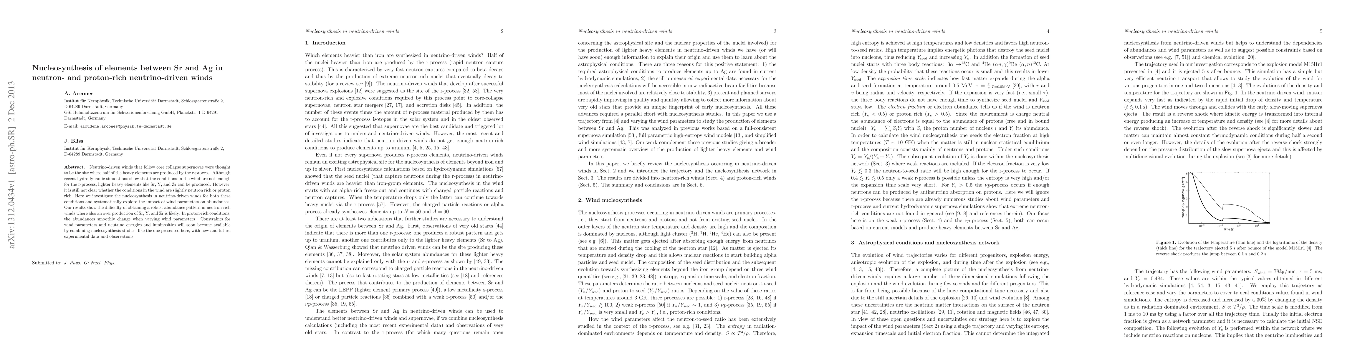 This paper investigates nucleosynthesis of elements between Sr and Ag in neutrino-driven winds following supernovae, finding that while lighter heavy elements can be produced, robust abundance patterns are difficult to obtain in neutron-rich winds, whereas proton-rich conditions yield smoother abundance variations. Future experimental data will help refine wind parameters.