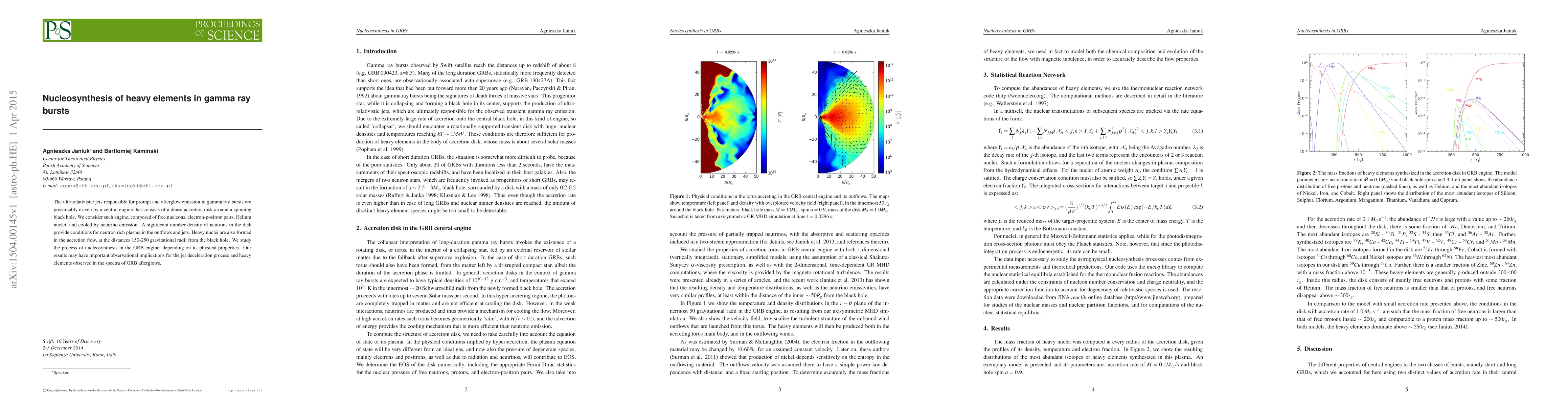 This study explores how heavy elements are formed in the extreme environments of gamma-ray burst jets, which are powered by black holes surrounded by dense, neutron-rich disks. The findings suggest that nucleosynthesis in these regions influences the composition of the jets and the observable features of gamma-ray bursts.
