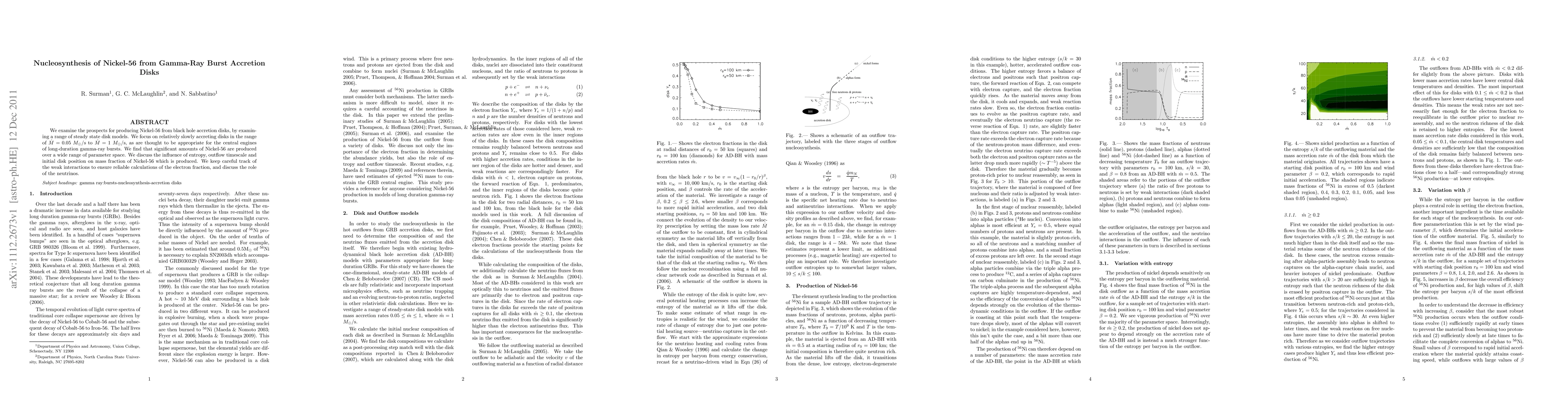 We examine the prospects for producing Nickel-56 from black hole accretion disks, by examining a range of steady state disk models. We focus on relatively slowly accreting disks in the range of 0.05 - 1 solar masses per second, as are thought to be appropriate for the central engines of long-duration gamma-ray bursts. We find that significant amounts of Nickel-56 are produced over a wide range of parameter space. We discuss the influence of entropy, outflow timescale and initial disk position on mass fraction of Nickel-56 which is produced. We keep careful track of the weak interactions to ensure reliable calculations of the electron fraction, and discuss the role of the neutrinos.