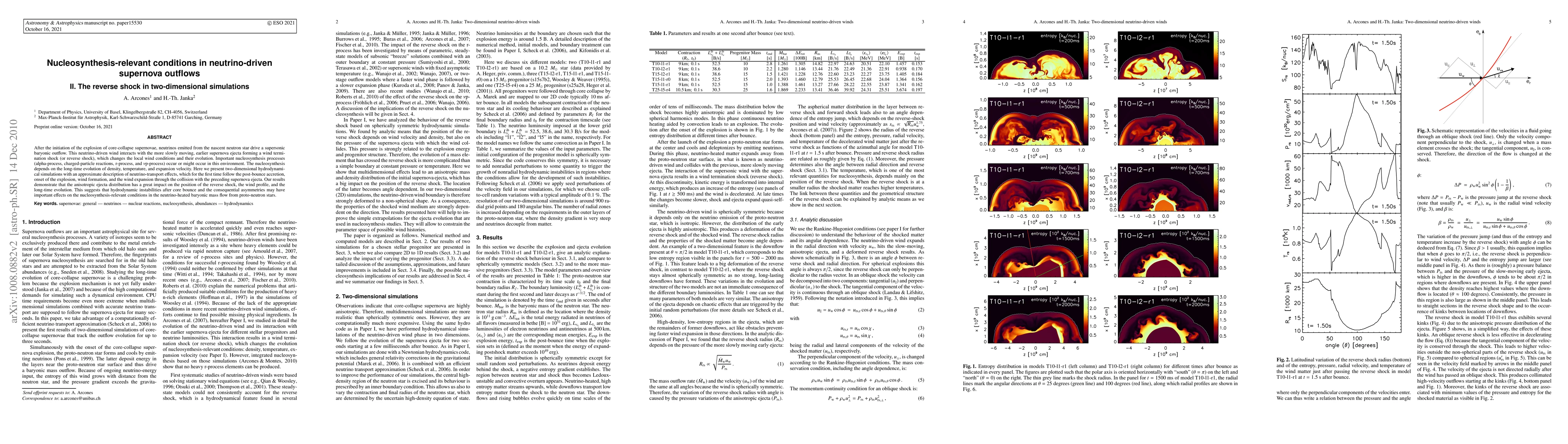 This paper presents two-dimensional simulations of the reverse shock in neutrino-driven supernova outflows, showing that the anisotropic ejecta distribution significantly impacts the shock's position and the wind profile. The findings suggest that hydrodynamic instabilities and asymmetries post-core bounce may critically influence nucleosynthesis conditions in the outflow.