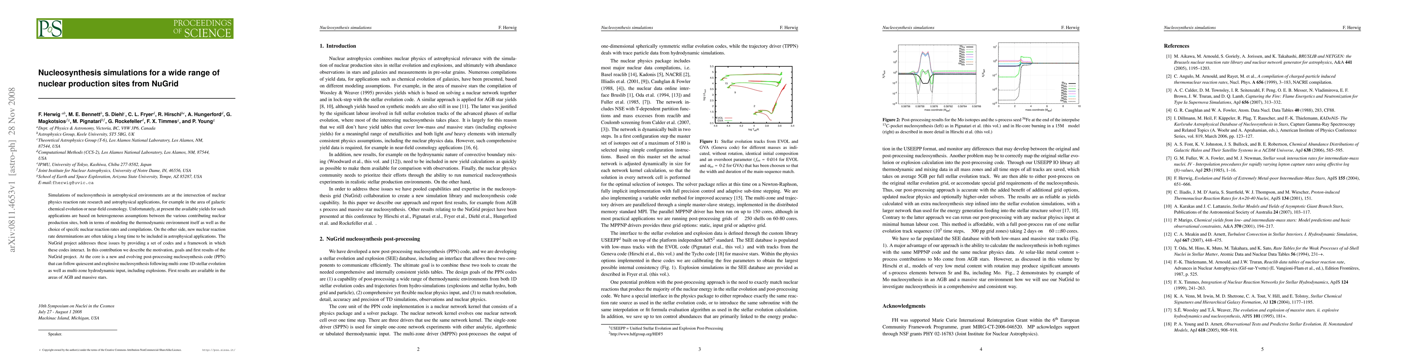 The NuGrid project aims to standardize nucleosynthesis simulations across various astrophysical environments by providing a unified framework for nuclear reaction rates and thermodynamic modeling. Initial results from the project's new post-processing nucleosynthesis code show promising outcomes for nucleosynthesis in asymptotic giant branch (AGB) stars and massive stars.