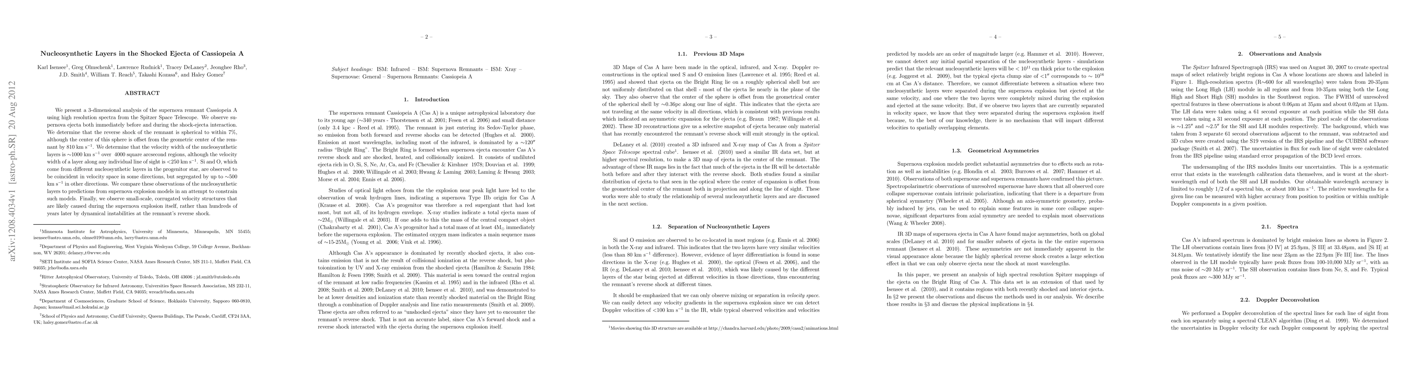 This paper presents a 3D analysis of Cassiopeia A using Spitzer Space Telescope data, revealing spherical nucleosynthetic layers with a velocity width of 1000 km/s, and identifying small-scale velocity structures likely formed during the supernova explosion. The study compares these observations to models to constrain supernova explosion mechanisms.