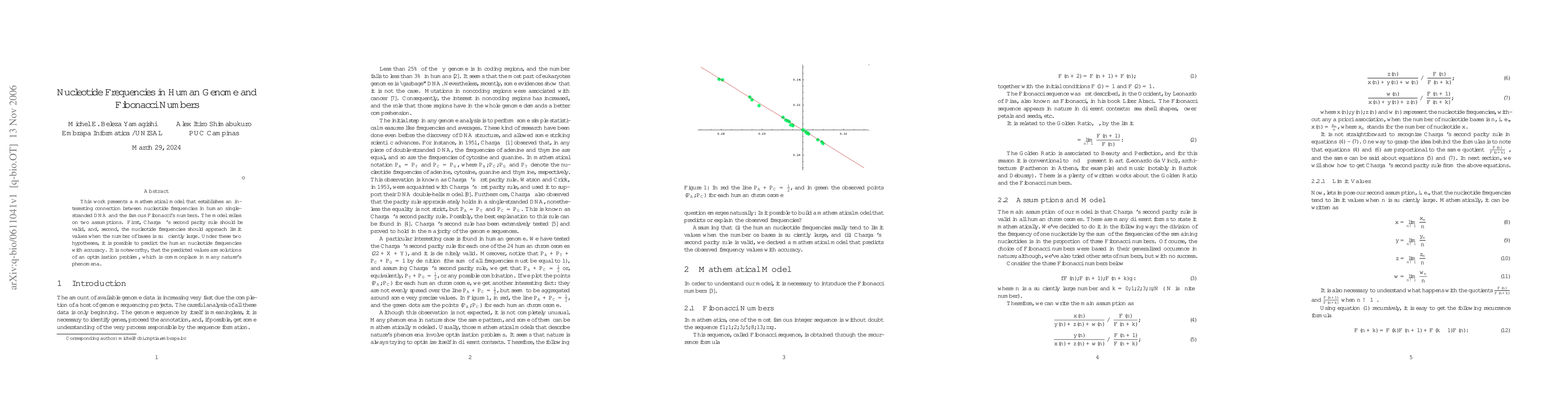 This work presents a mathematical model that establishes an interesting connection between nucleotide frequencies in human single-stranded DNA and the famous Fibonacci's numbers. The model relies on two assumptions. First, Chargaff's second parity rule should be valid, and, second, the nucleotide frequencies should approach limit values when the number of bases is sufficiently large. Under these two hypotheses, it is possible to predict the human nucleotide frequencies with accuracy. It is noteworthy, that the predicted values are solutions of an optimization problem, which is commonplace in many nature's phenomena.
