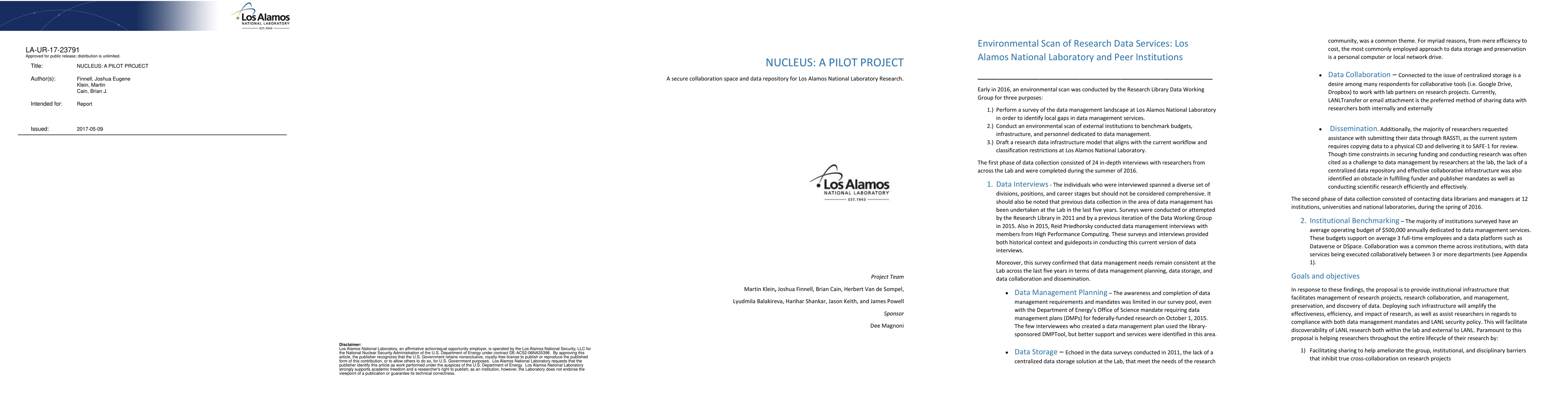 This pilot project assessed data management services at Los Alamos National Laboratory and identified gaps in current infrastructure. A draft research data infrastructure model was developed to address these needs and inform future data management projects.