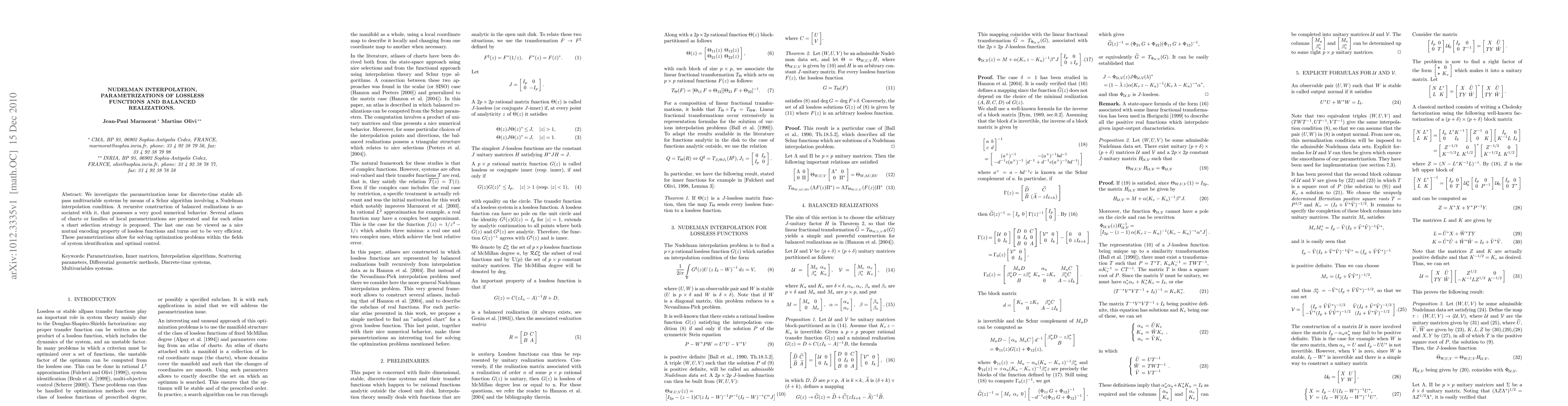 This paper explores the parametrization of discrete-time stable all-pass multivariable systems using a Nudelman interpolation-based Schur algorithm, presenting efficient balanced realizations with good numerical stability. It also introduces atlases of charts for local parametrizations and a chart selection strategy for solving optimization problems in system identification and optimal control.
