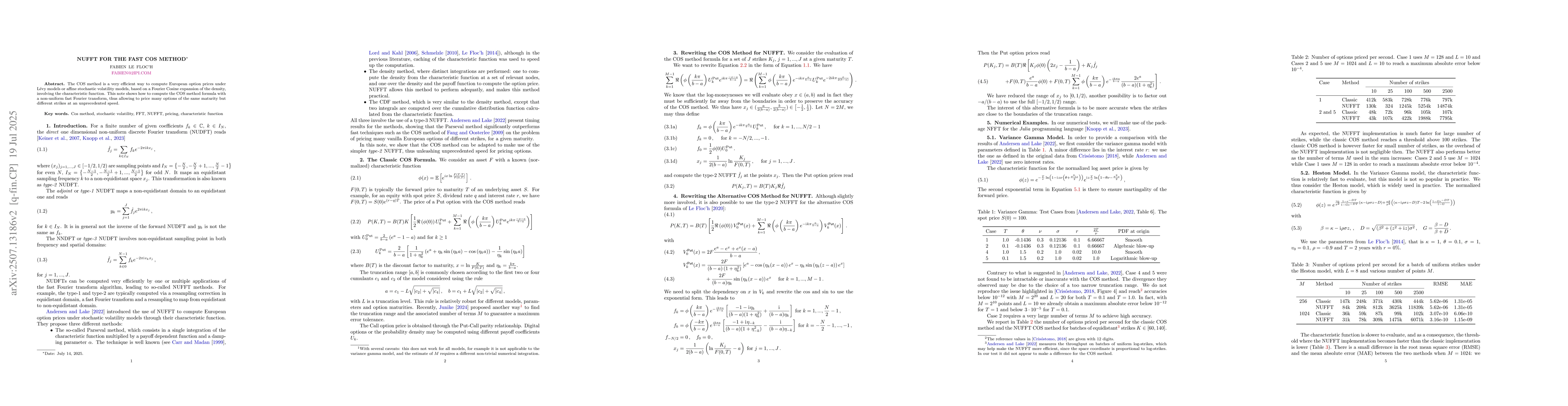The COS method is a very efficient way to compute European option prices under L\'evy models or affine stochastic volatility models, based on a Fourier Cosine expansion of the density, involving the characteristic function. This note shows how to compute the COS method formula with a non-uniform fast Fourier transform, thus allowing to price many options of the same maturity but different strikes at an unprecedented speed.
