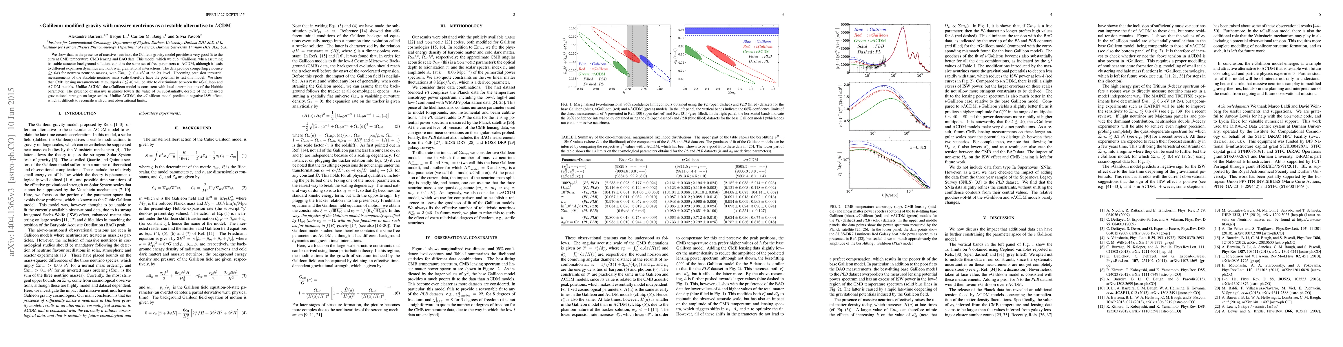 This paper proposes the $\nu$Galileon model, a modified gravity framework with massive neutrinos, as an alternative to $\Lambda$CDM. It provides a good fit to current cosmological data and predicts different expansion dynamics and gravitational interactions, potentially testable with future precision measurements of neutrino masses.