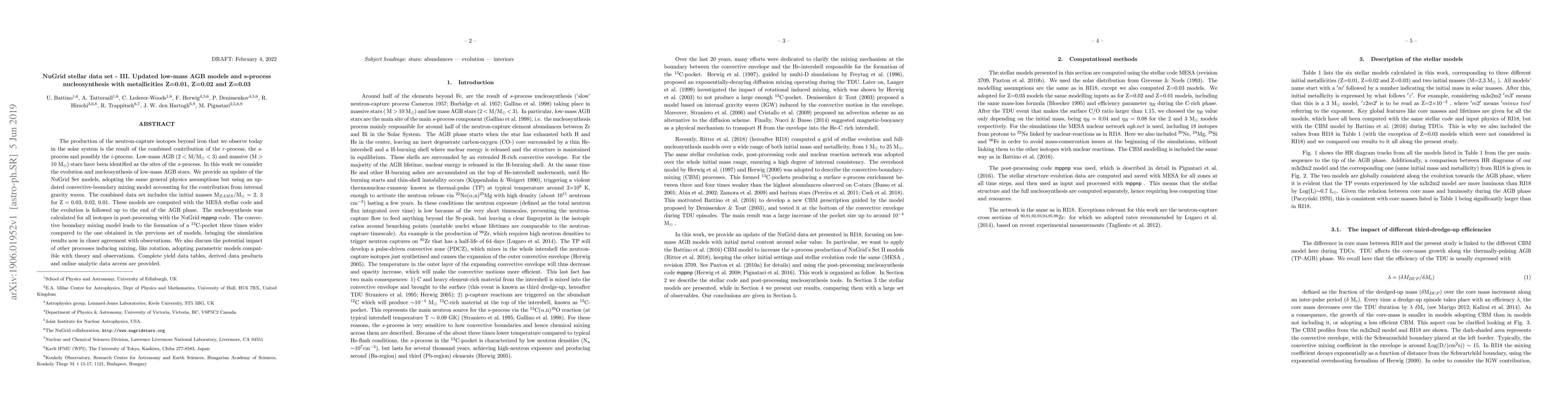 The production of the neutron-capture isotopes beyond iron that we observe today in the solar system is the result of the combined contribution of the r-process, the s- process and possibly the i-process. Low-mass AGB (2 < M/Msun < 3) and massive (M >10 Msun ) stars have been identified as the sites of the s-process. In this work we consider the evolution and nucleosynthesis of low-mass AGB stars. We provide an update of the NuGrid Set models, adopting the same general physics assumptions but using an updated convective-boundary mixing model accounting for the contribution from internal gravity waves. The combined data set includes the initial masses Mzams/Msun = 2, 3 for Z = 0.03, 0.02, 0.01. These models are computed with the MESA stellar code and the evolution is followed up to the end of the AGB phase. The nucleosynthesis was calculated for all isotopes in post-processing with the NuGrid mppnp code. The convective boundary mixing model leads to the formation of a 13C-pocket three times wider compared to the one obtained in the previous set of models, bringing the simulation results now in closer agreement with observations. We also discuss the potential impact of other processes inducing mixing, like rotation, adopting parametric models compatible with theory and observations. Complete yield data tables, derived data products and online analytic data access are provided.