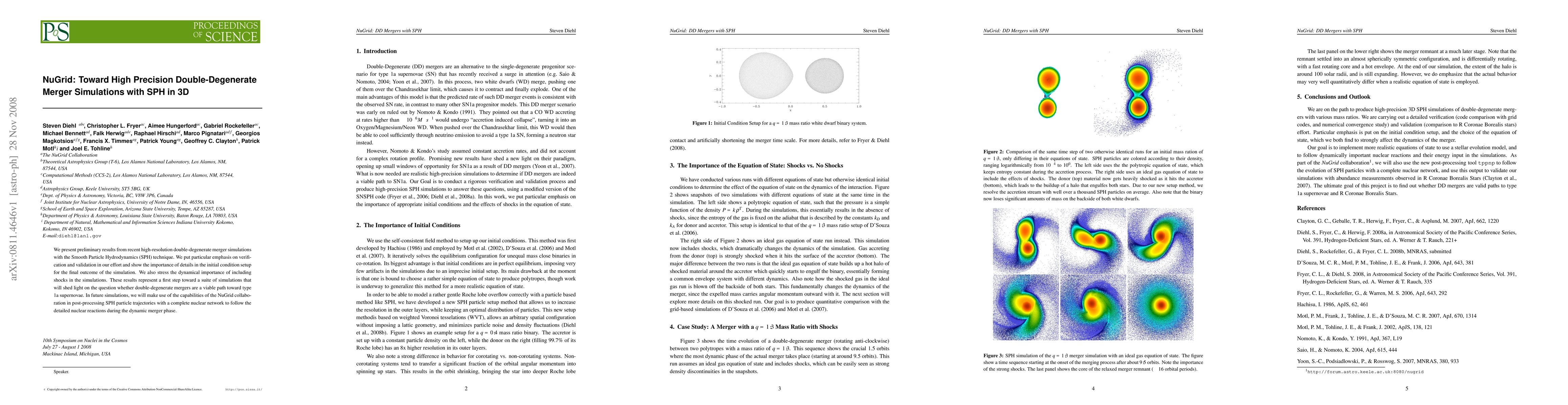 We present preliminary results from recent high-resolution double-degenerate merger simulations with the Smooth Particle Hydrodynamics (SPH) technique. We put particular emphasis on verification and validation in our effort and show the importance of details in the initial condition setup for the final outcome of the simulation. We also stress the dynamical importance of including shocks in the simulations. These results represent a first step toward a suite of simulations that will shed light on the question whether double-degenerate mergers are a viable path toward type 1a supernovae. In future simulations, we will make use of the capabilities of the NuGrid collaboration in post-processing SPH particle trajectories with a complete nuclear network to follow the detailed nuclear reactions during the dynamic merger phase.