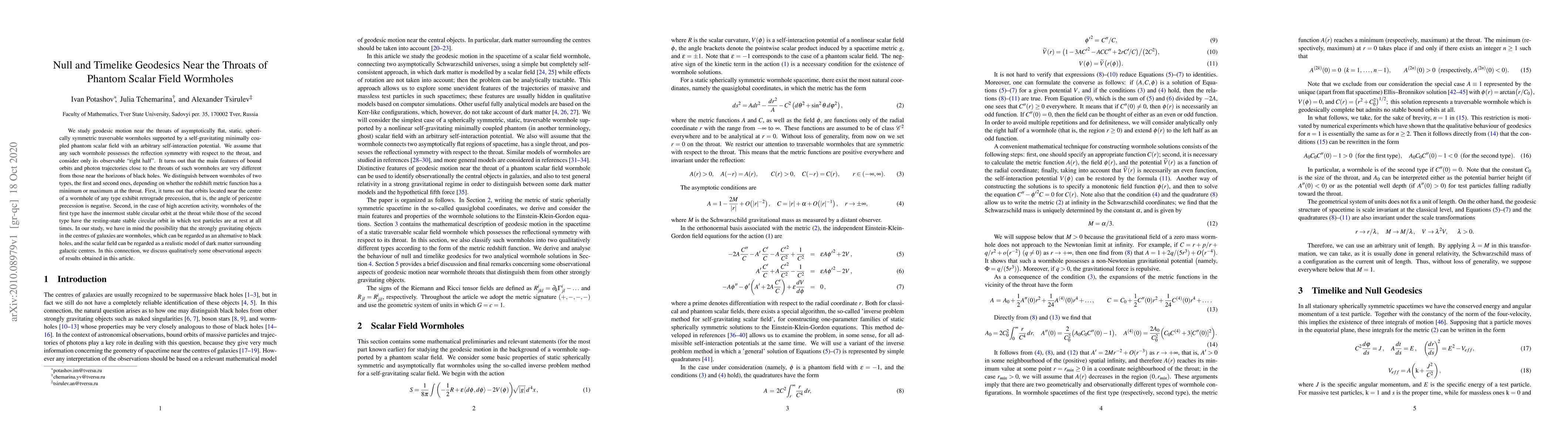 We study geodesic motion near the throats of asymptotically flat, static, spherically~symmetric traversable wormholes supported by a self-gravitating minimally coupled phantom scalar field with an arbitrary self-interaction potential. We assume that any such wormhole possesses the reflection symmetry with respect to the throat, and consider only its observable "right~half". It turns out that the main features of bound orbits and photon trajectories close to the throats of such wormholes are very different from those near the horizons of black holes. We~distinguish between wormholes of two types, the first and second ones, depending on whether the redshift metric function has a minimum or maximum at the throat. First, it turns out that orbits located near the centre of a wormhole of any type exhibit retrograde precession, that is, the angle of pericentre precession is negative. Second, in the case of high accretion activity, wormholes of the first type have the innermost stable circular orbit at the throat while those of the second type have the resting-state stable circular orbit in which test particles are at rest at all times. In our study, we have in mind the possibility that the strongly gravitating objects in the centres of galaxies are wormholes, which can be regarded as an alternative to black holes, and the scalar field can be regarded as a realistic model of dark matter surrounding galactic centres. In this connection, we~discuss qualitatively some observational aspects of results obtained in this article.