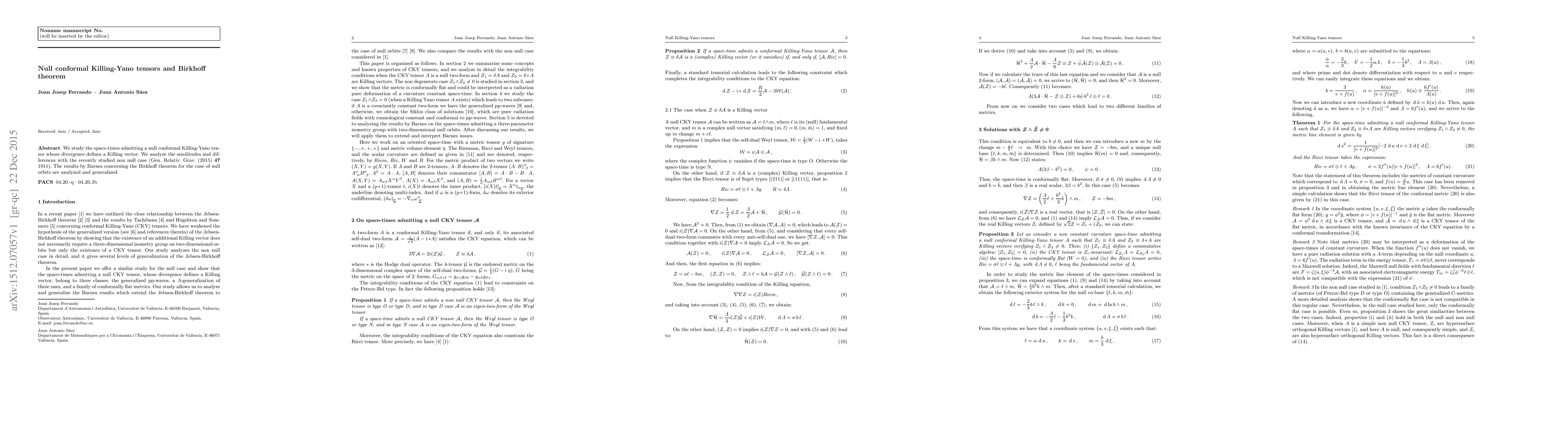 This paper investigates space-times with a null conformal Killing-Yano tensor, comparing its properties to those with non-null tensors. It generalizes Barnes' Birkhoff theorem results for null orbits, highlighting similarities and differences to the non-null case.