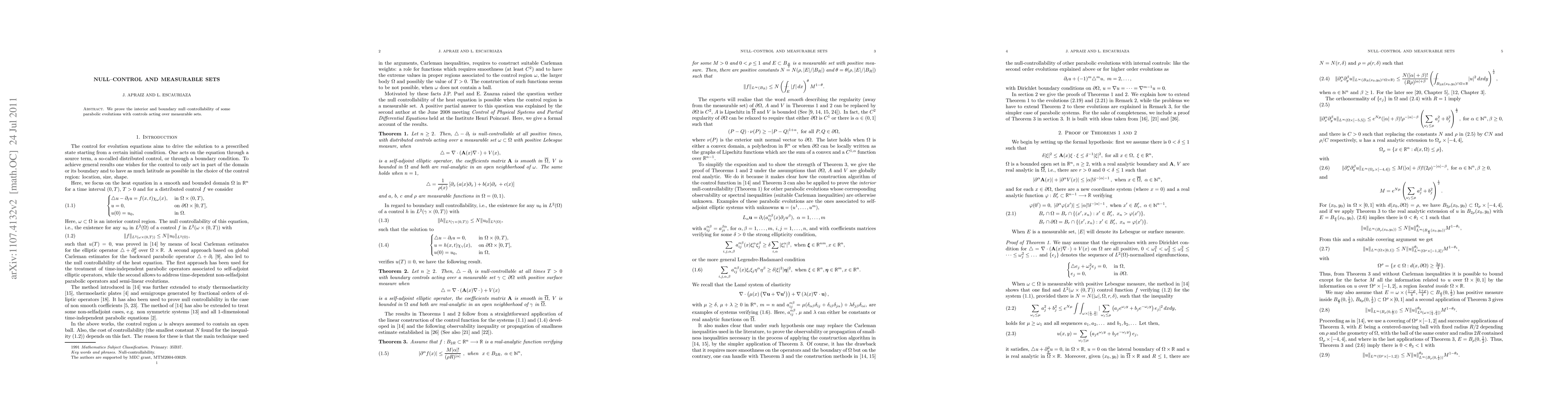 This paper demonstrates the interior and boundary null-controllability of certain parabolic evolutions where controls are applied over measurable sets, establishing significant results for control theory.