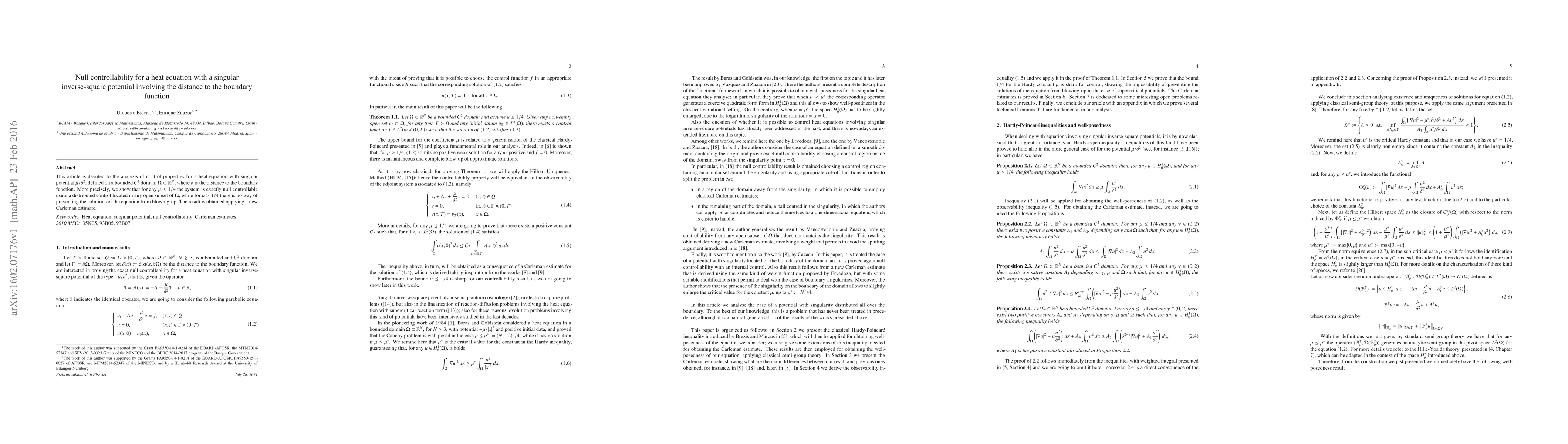 This article is devoted to the analysis of control properties for a heat equation with singular potential $\mu/\delta^2$, defined on a bounded $C^2$ domain $\Omega\subset\mathbb{R}^N$, where $\delta$ is the distance to the boundary function. More precisely, we show that for any $\mu\leq 1/4$ the system is exactly null controllable using a distributed control located in any open subset of $\Omega$, while for $\mu>1/4$ there is no way of preventing the solutions of the equation from blowing-up. The result is obtained applying a new Carleman estimate.