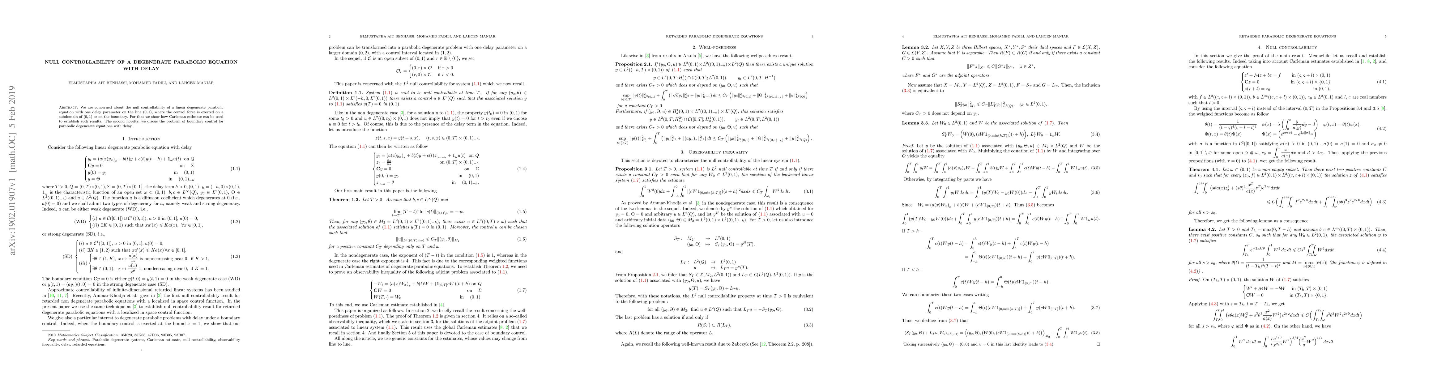 This paper investigates the null controllability of a linear degenerate parabolic equation with a delay parameter, employing Carleman estimates to establish controllability. It also explores boundary control for parabolic degenerate equations with delay, presenting a novel approach to this problem.