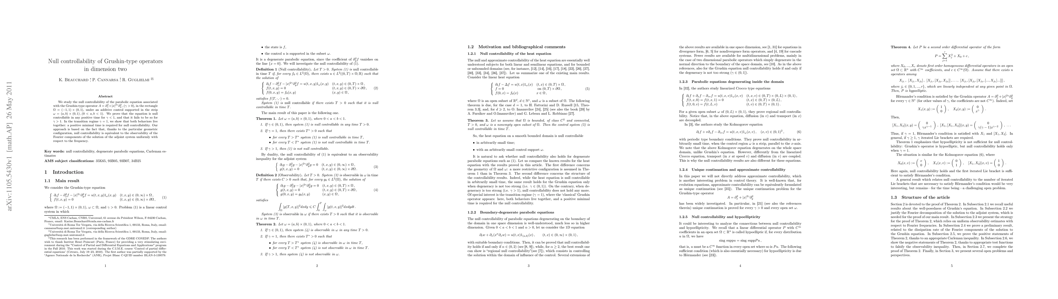 The paper investigates null controllability of a specific partial differential equation in dimension two, showing that it is controllable for η<1 but not for η>1, with an intermediate transition regime where both behaviors coexist.