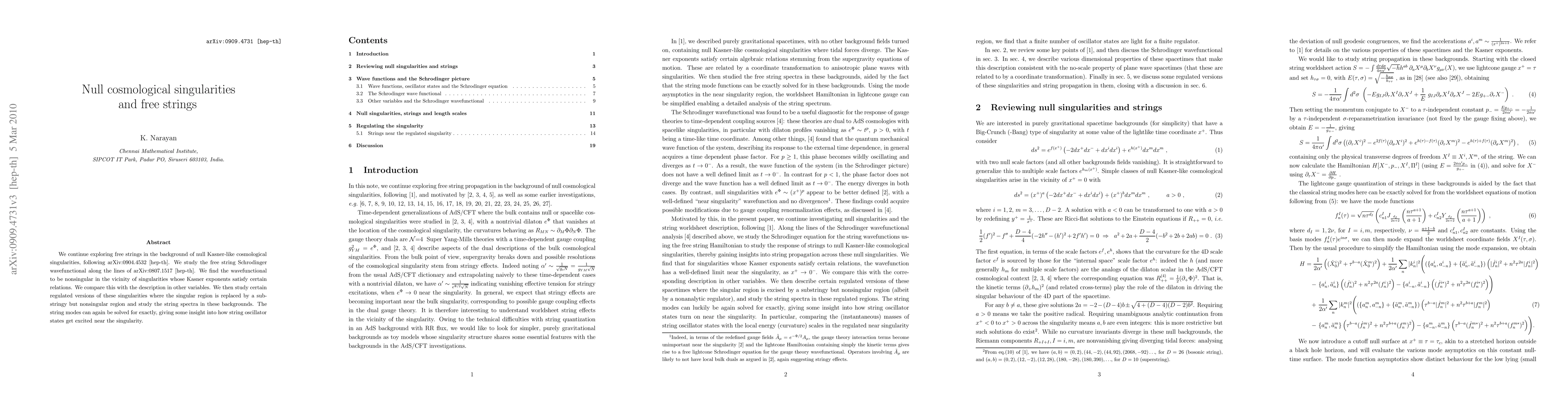 This paper investigates free strings in the context of null cosmological singularities, specifically null Kasner-like singularities. The study reveals that the string Schrödinger wavefunctional remains nonsingular under certain conditions on the Kasner exponents, providing insights into string excitation near singularities.
