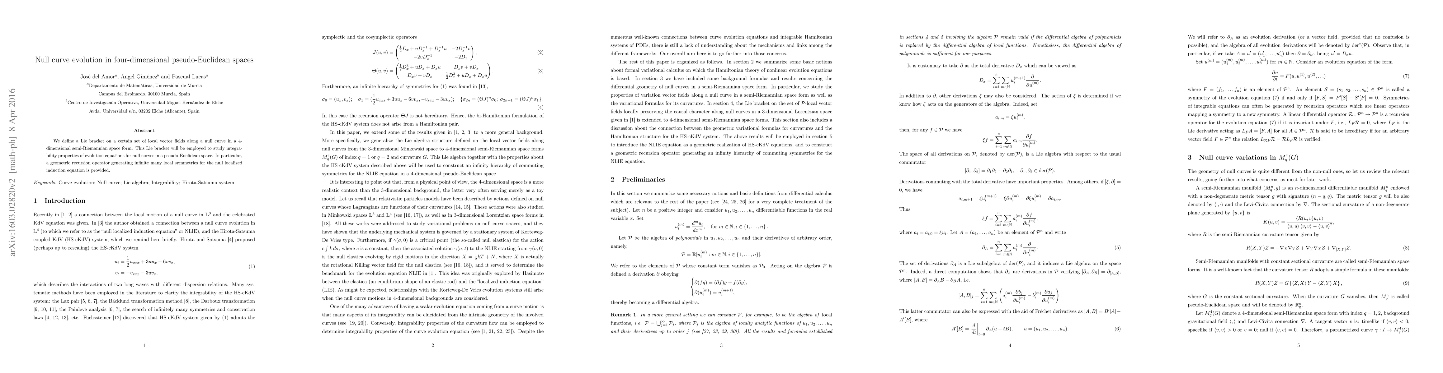 We define a Lie bracket on a certain set of local vector fields along a null curve in a 4-dimensional semi-Riemannian space form. This Lie bracket will be employed to study integrability properties of evolution equations for null curves in a pseudo-Euclidean space. In particular, a geometric recursion operator generating infinite many local symmetries for the null localized induction equation is provided.