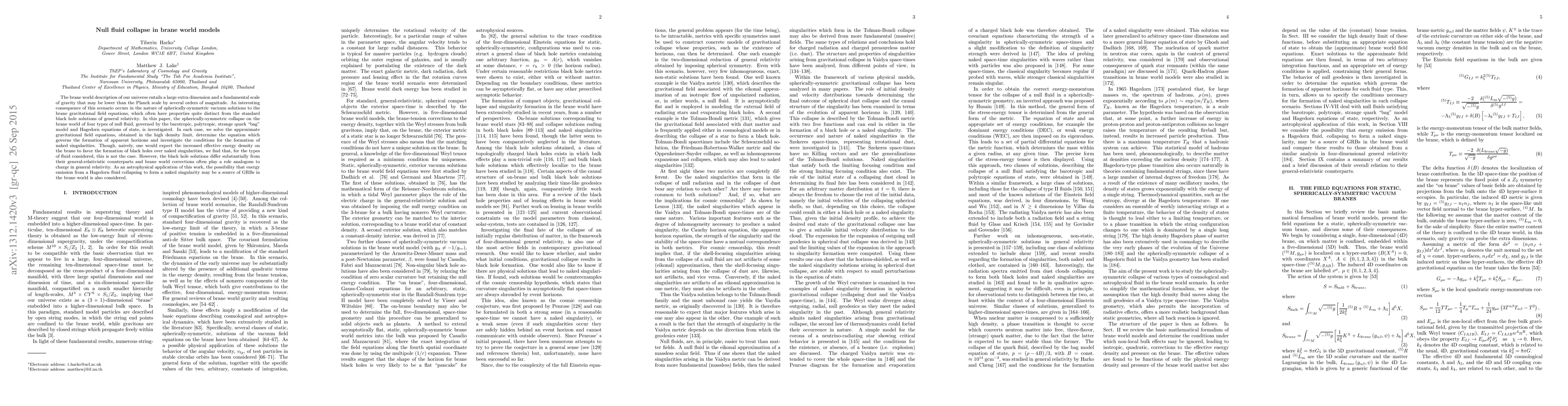 This paper explores the collapse of four types of null fluid in brane world models, finding that despite higher effective energy densities, naked singularities can form instead of black holes. It also suggests that energy emissions from such a collapse could potentially explain gamma-ray bursts (GRBs) in brane world scenarios.